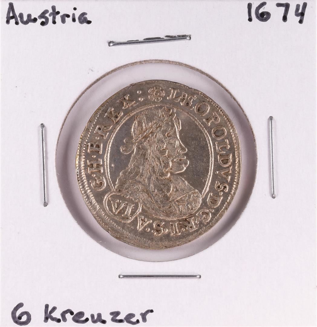 One 1674 Austria 6 Kreuzer Silver Coin.