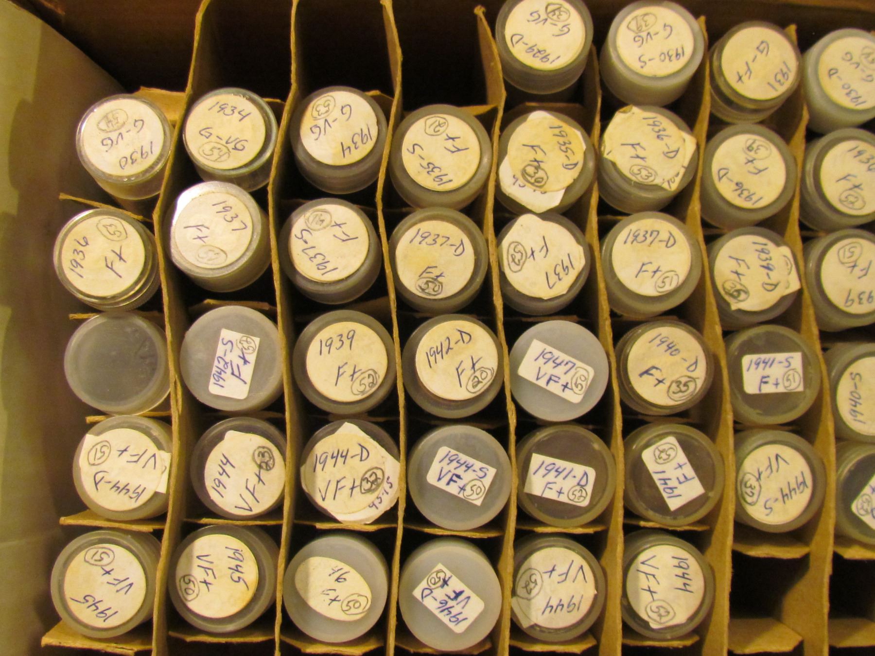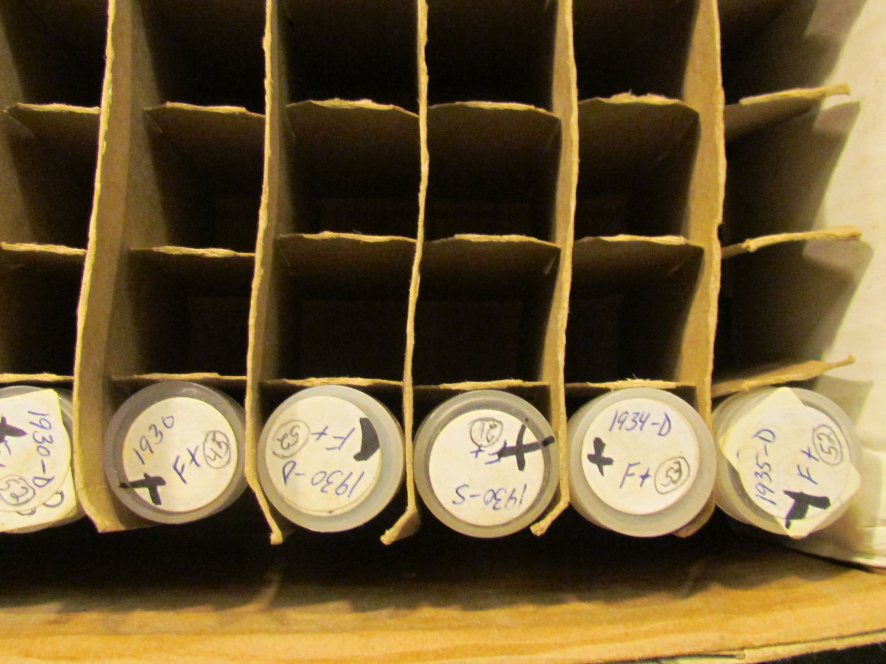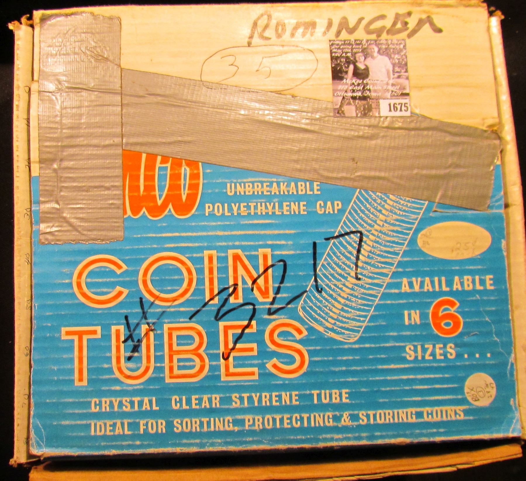 1675 . (64) Full & partially full tubes of Lincoln Cents in a 50-Roll Stock box. Includes such dates as 1929D, 30P, D S, 31P, 34P, 35P, 44P, 46D and much more.