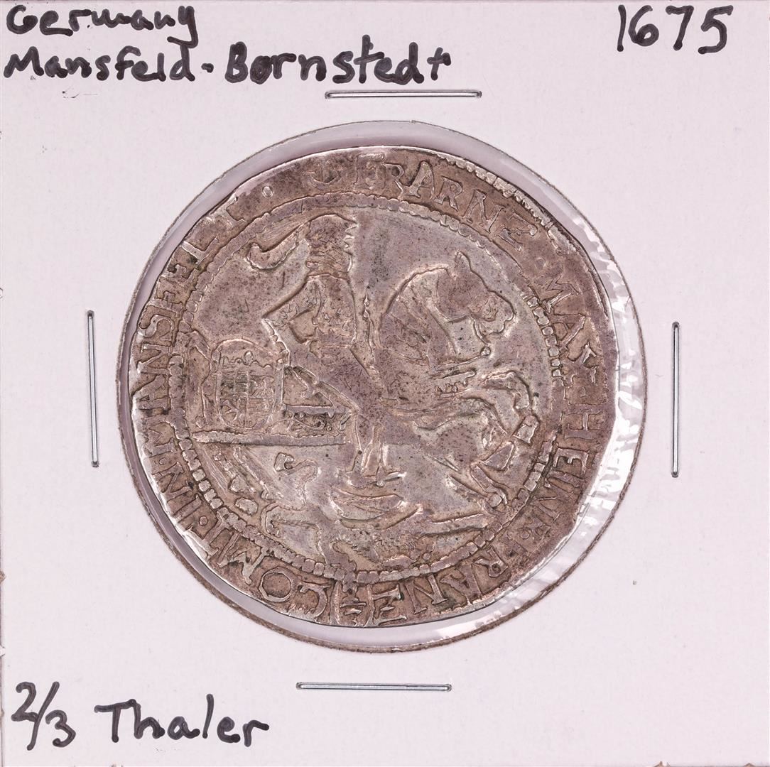 One 1675 Germany Mansfield-Bornsted 2/3 Thaler Silver Coin.