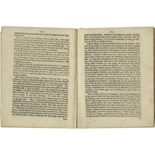 <B>1677 Printed Account of the Fire of London.</B></I> <I>A True and Faithful Account Of The Several Informations Exhibited To the Honourable Committee appointed by the Parliament To Inquire into the late Dreadful Burning of the City of London.</B></I> (London: 1667), 35 pages, no wraps, 12mo (5.5" x 7.25"). The first lines of the booklet read, "<I>Upon the second of September 1666. The Fire began in London at one Farryners House a Baker, in Pudding-Lane, between the hours of one and two in the morning, and continued burning until the sixth of September following; consuming, as by the Surveyors appears in print, three hundred seventy three acres within the Walls of the City of London…</B></I>" This fire was one of the most devastating events to hit the city of London. This printed document contains eyewitness accounts of the fire, and its direct and immediate impact on the city. Something you can only get from primary sources. A wonderful opportunity. <BR><BR>The letter is in good condition; disbound, no wraps, tears along left vertical edge, slight staining on the title page.