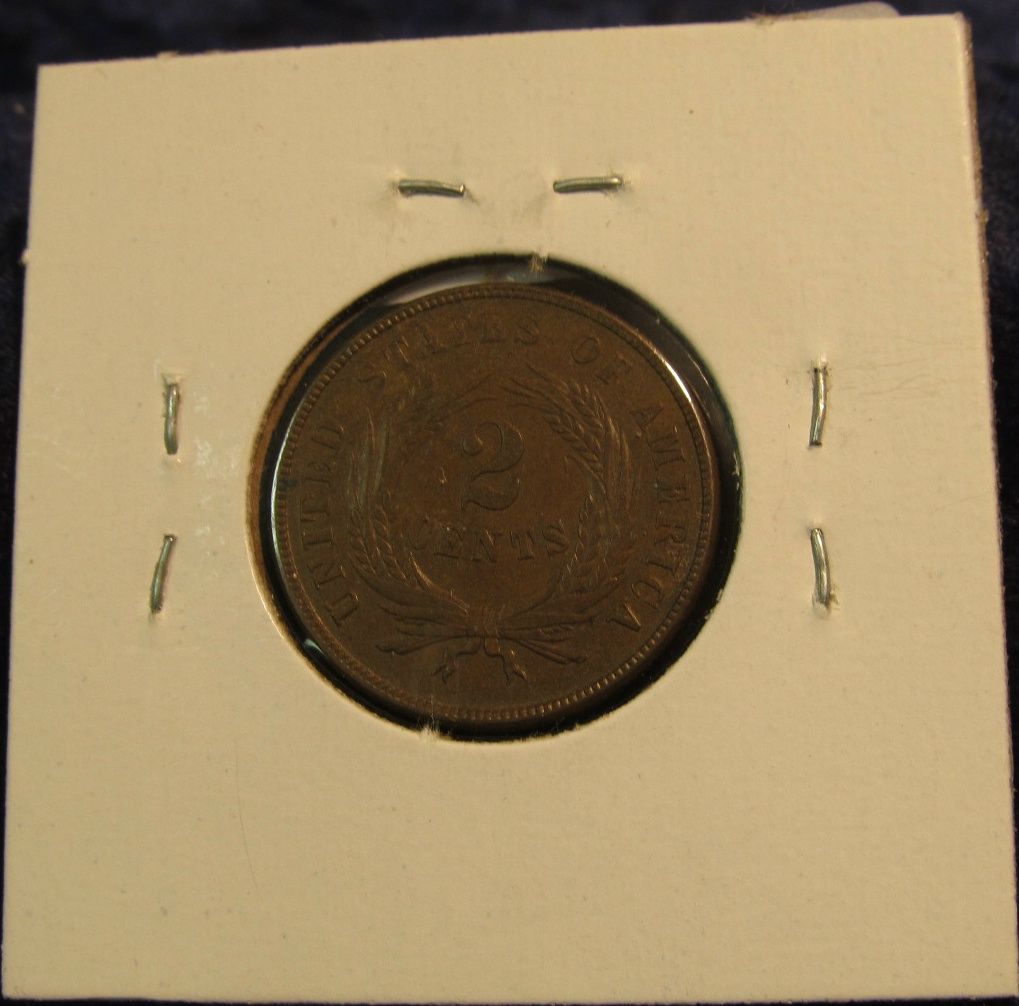 168. 1866 U.S. Two Cent Piece. EF 40. Redbook value $50.00.