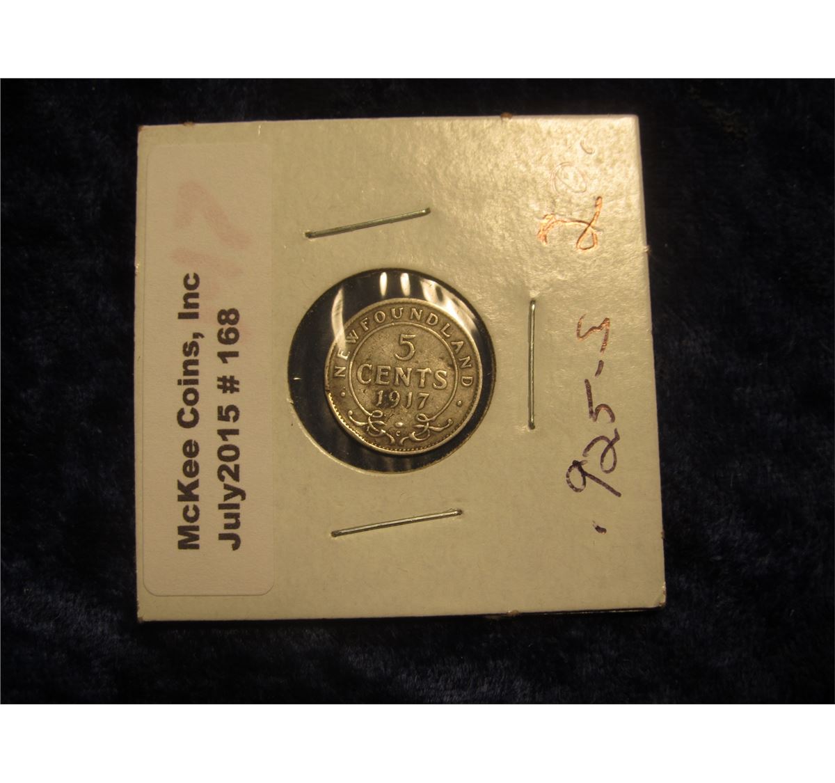 168. 1917C Newfoundland, Canada Five Cent Silver. VG-8.