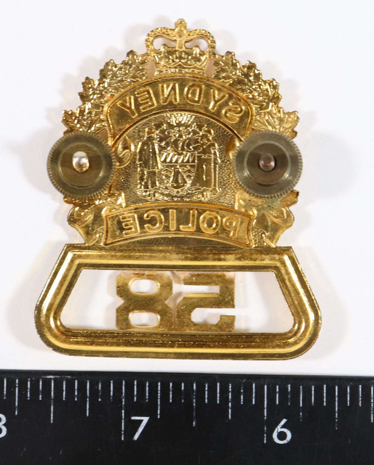 NUMBERED #58VINTAGE FRENCH CANADIEN CANADA CANADIAN POLICE LAW ENFORCEMENT CAP BADGE INSIGNIA