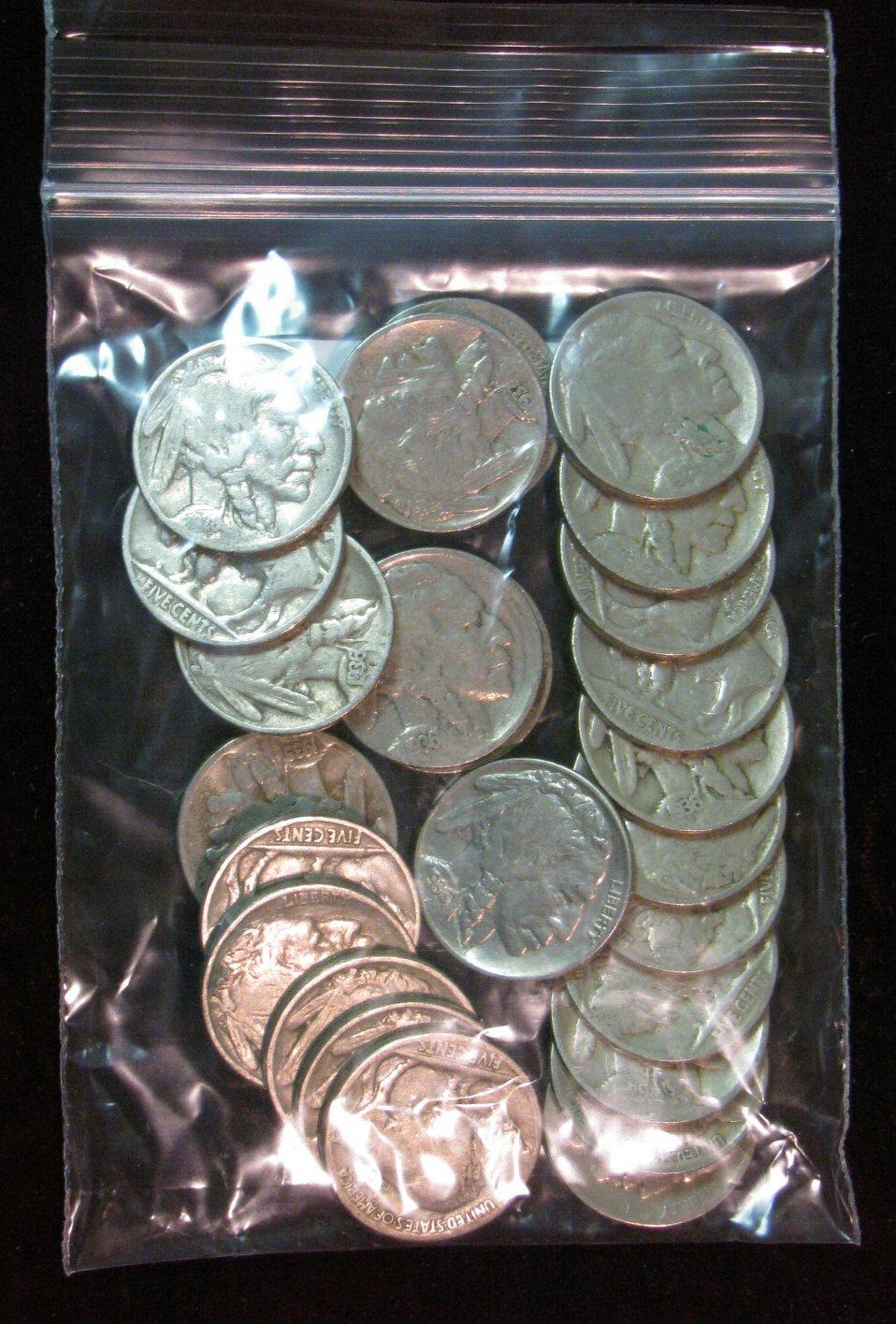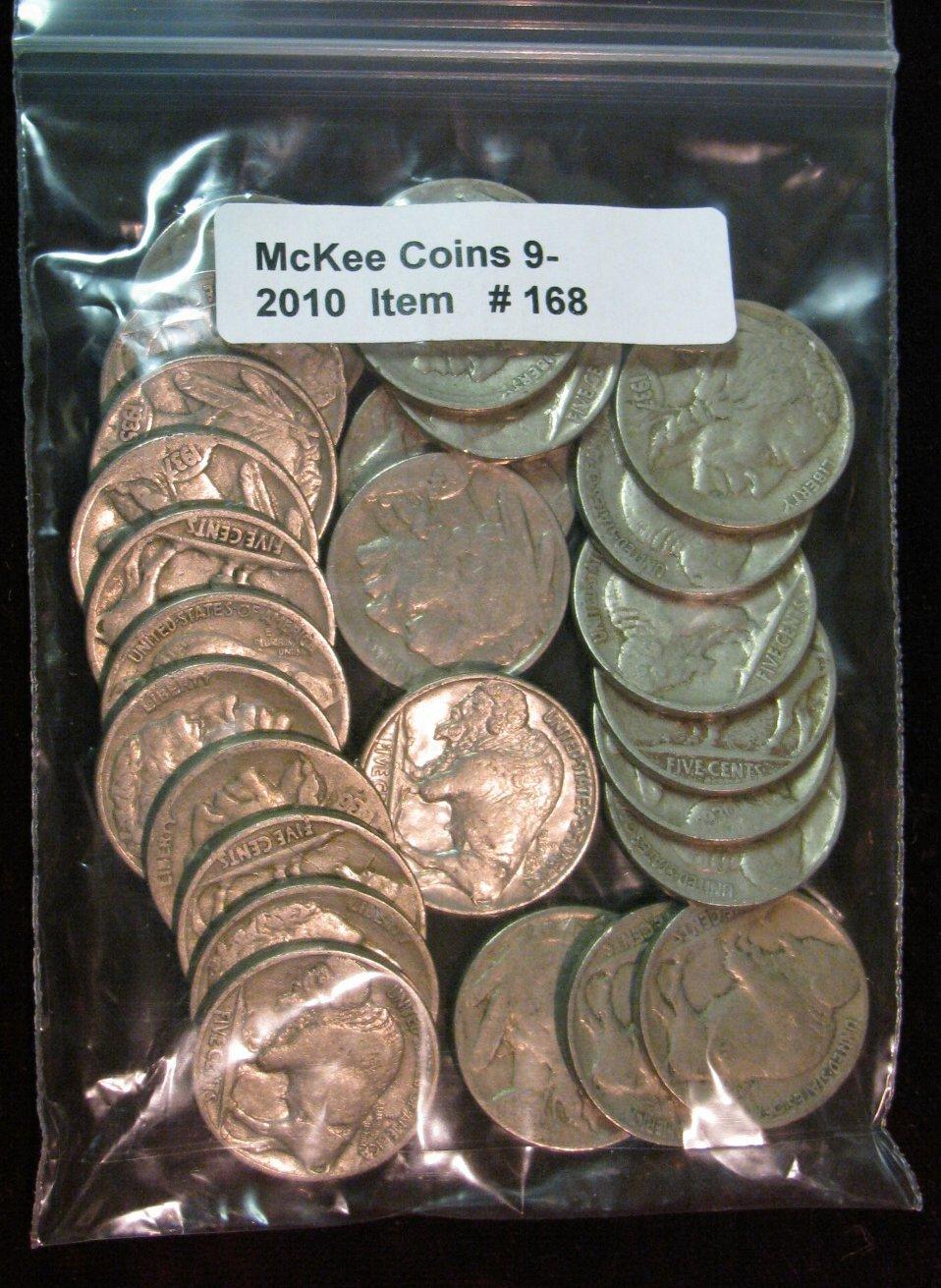 168. Roll of (25) Mixed Date Buffalo Nickels. Average circulated.