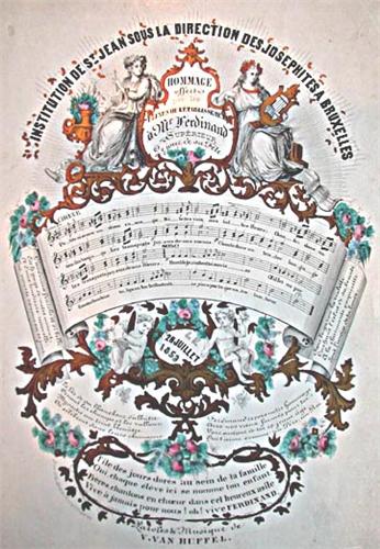 - 21 de format moyen (+/- 24 x 17 cm) : programme de distribution de prix, loterie "au profit des pauvres", hommages d'élèves à leur institution ou professeur, étrennes, programmes de concert (société d'Orphée de Grammont en 1844, soc. philharmonique de Ghistelles en 1847 et 1848), faire-part de mariage, programme de course hippique, calendrier de 1843... ,