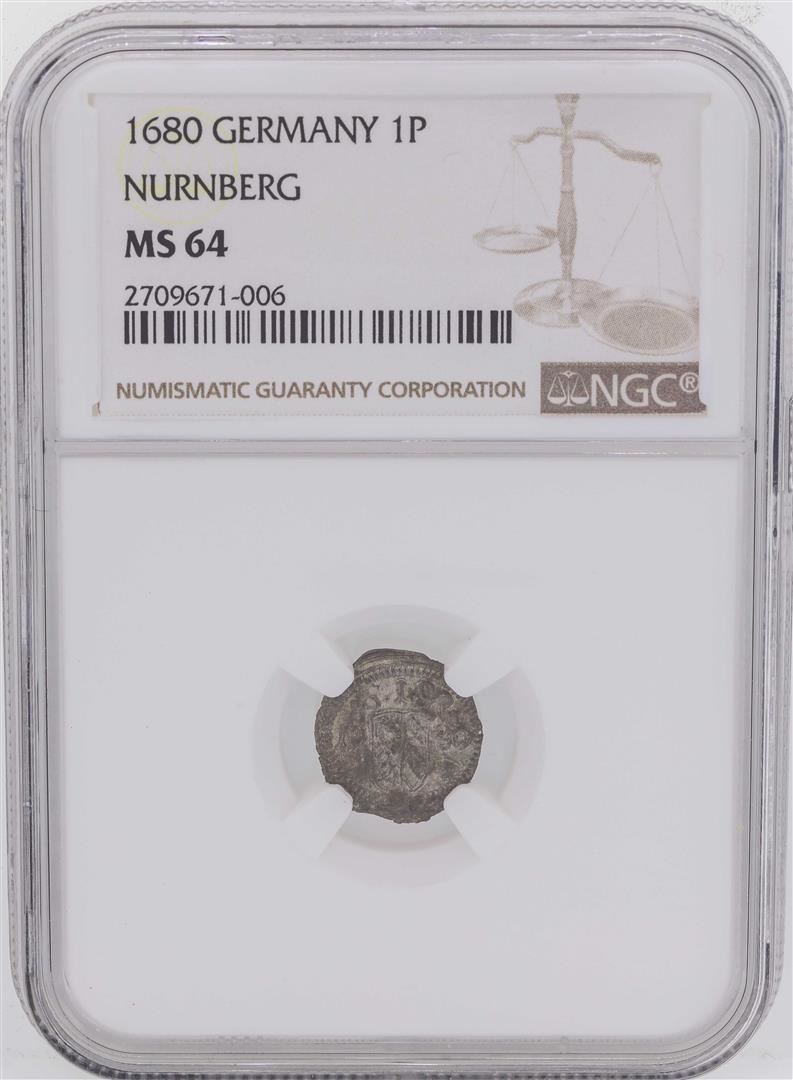 One 1680 Germany 1 Pfennig Nurnberg Coin NGC MS64. NGC Certified.