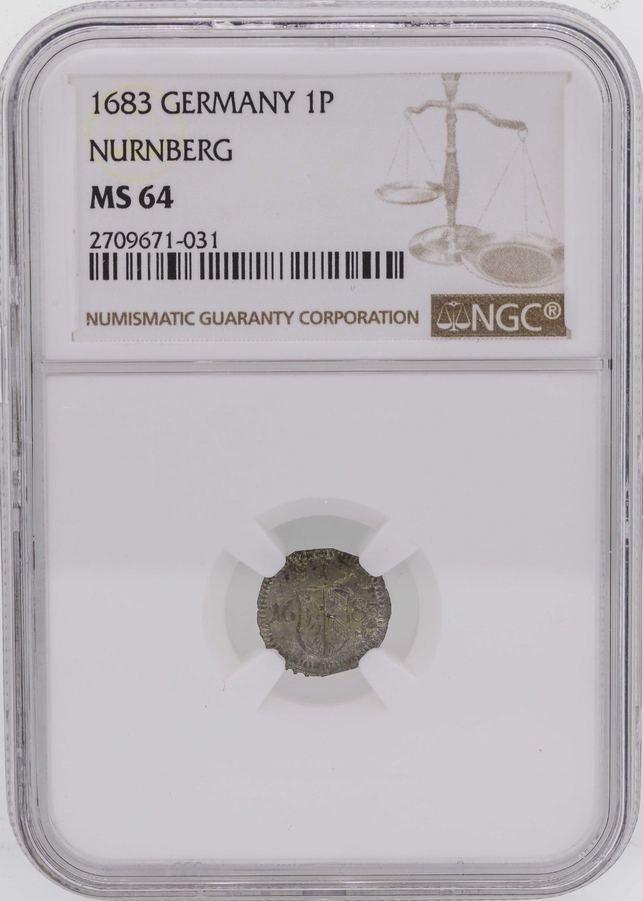 One 1683 Germany 1 Pfennig Nurnberg Coin NGC MS64.