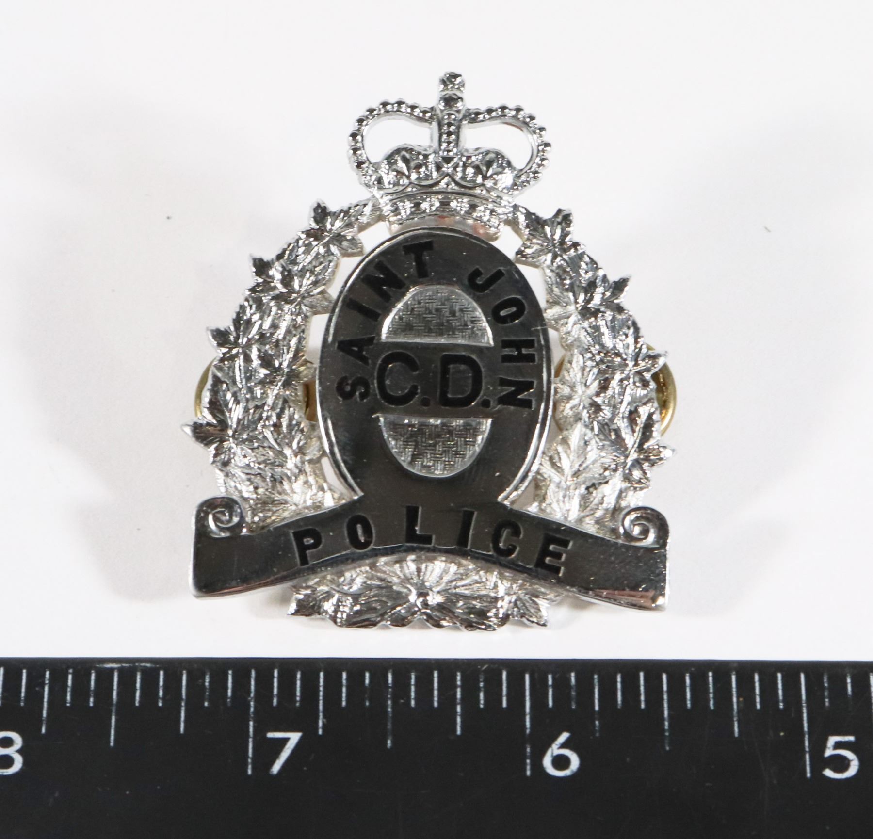 W. SCULLY MAKER MARKED ON REVERSE VINTAGE FRENCH CANADIEN CANADA CANADIAN POLICE LAW ENFORCEMENT CAP BADGE INSIGNIA