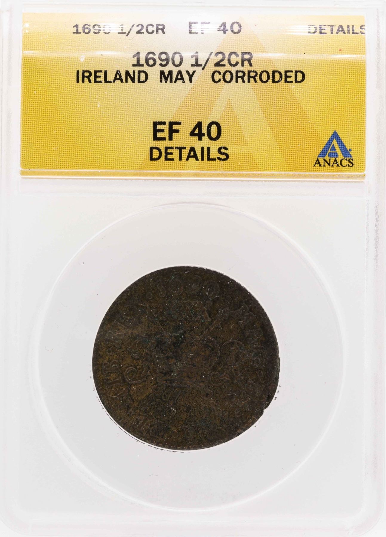 One 1690 Ireland May 1/2 Crown Coin ANACS XF40 Details .