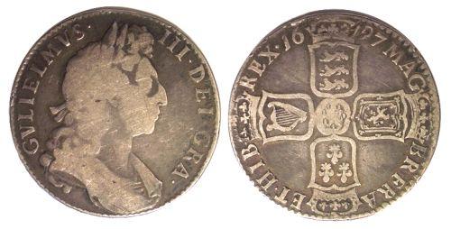 William III, nice clean piece, pleasant looking VG-Fine S#3487.