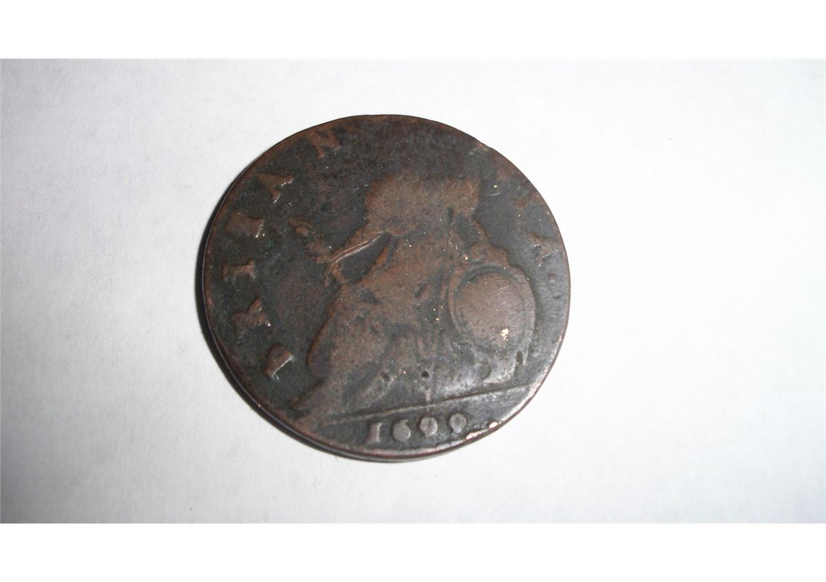 1699 ENGLISH KING WILLIAM III (WILLIAM OF ORANGE) COPPER HALFPENNY