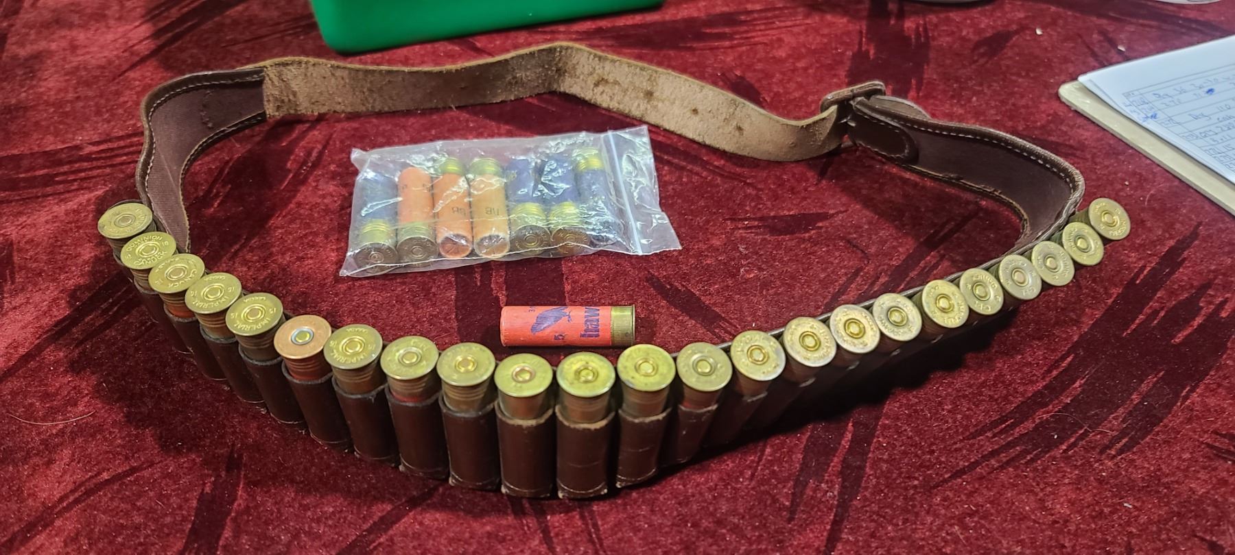 16GA BANDOLIER WITH 23 MIXED ROUNDS OF #6 AND 7 1/2 SHOT PLUS 7 16GA BB ONE SLUG AND A #5
