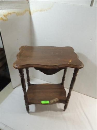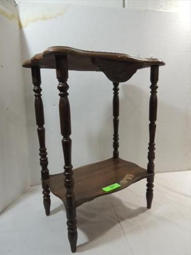 16X10X24 VINTAGE WOOD SPINDLE LEG SIDE TABLE. AS SHOWN. VIEW PICTURE FOR DETAIL.