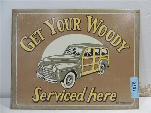 16X12 METAL PRINTED SIGN: GET YOUR WOODY... BY DEWING MOORE SIGNS. AS SHOWN. VIEW PICTURE FOR DETAIL.