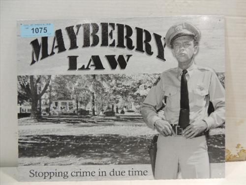16X12 METAL PRINTED SIGN MAYBERRY LAW, BARNEY FIFE. AS SHOWN. 2009 DESPERATE PROPERTIES SIGNS. VIEW PICTURE FOR DETAIL.