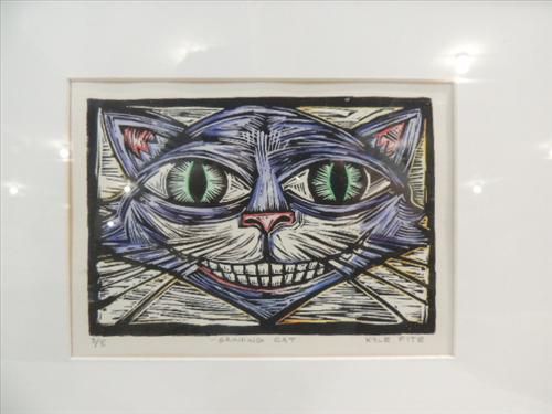 16X14 FRAMED MODERN ART GRINNING CAT BY KYLE FITE. NUMBER 3/8. AS SHOWN. VIEW PICTURE FOR DETAIL.
