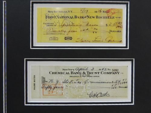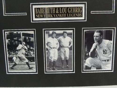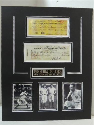 16X20 BASEBALL PHOTOS & FACSMILIE SIGNED BANK CHECKS BABE RUTH & LOU GEHRIG. AS SHOWN. VIEW PICTURE FOR DETAIL.