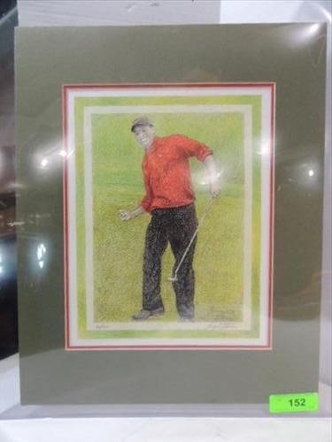 16X20 MATTED TIGER WOODS ARTIST PROOF SIGNED & NUMBERED. ARTIST: LARRY PETERSON 78 OF 500. AS SHOWN. VIEW PICTURE FOR DETAIL.
