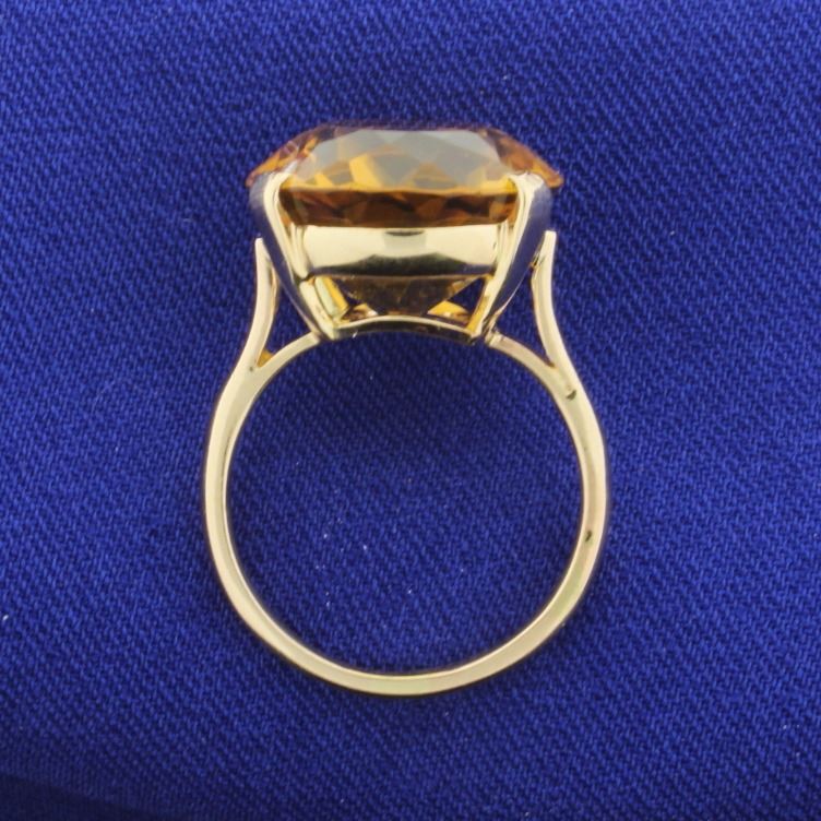 In 14k yellow gold this rings contains a 16ct beautifully cut citrine gemstone with excellent color + clarity. Size 7 8.1g