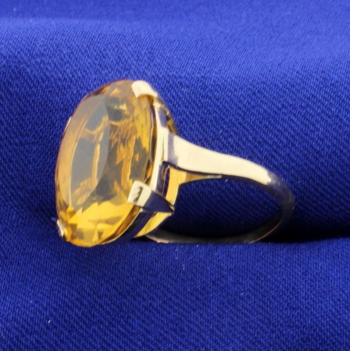 In 14k yellow gold this rings contains a 16ct beautifully cut citrine gemstone with excellent color + clarity. Size 7      8.1g