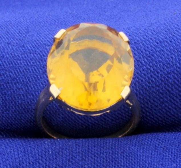 In 14k yellow gold this rings contains a 16ct beautifully cut citrine gemstone with excellent color + clarity. Size 7 8.1g
