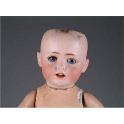 16” JDK 257 BABY. This baby has blue glass sleep eyes and fine bisque. Doll is on a jointed composition baby body, not a Kestner body. CONDITION: Body has flaking to paint, condition overall is fair to good. 1-2207