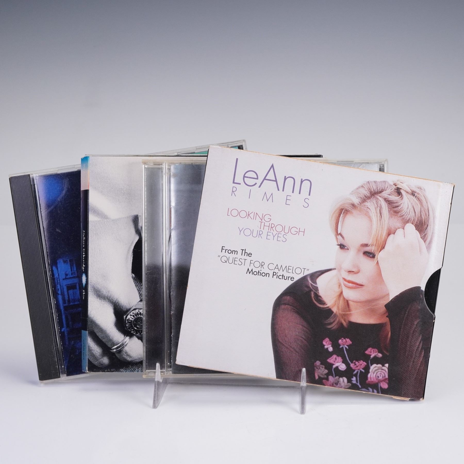 A diverse collection of sixteen original music CDs featuring an eclectic mix of pop, jazz, and movie soundtrack recordings from notable artists. Highlights include Melissa Etheridge's iconic self-titled album, Rick Margitza's jazz release This Is New, and LeAnn Rimes' Looking Through Your Eyes single from the Quest for Camelot motion picture soundtrack. Other artists and albums in the lot span late 20th-century pop and adult contemporary hits, offering a snapshot of multiple music genres. Jewel cases and inserts are included. Lot measures 5"L x 5.5"W x 6.25"H.