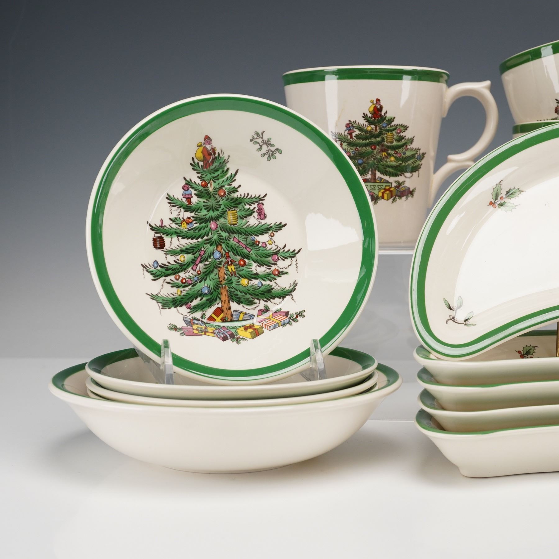 16pc Spode Earthenware Tableware Ensemble, Christmas Tree