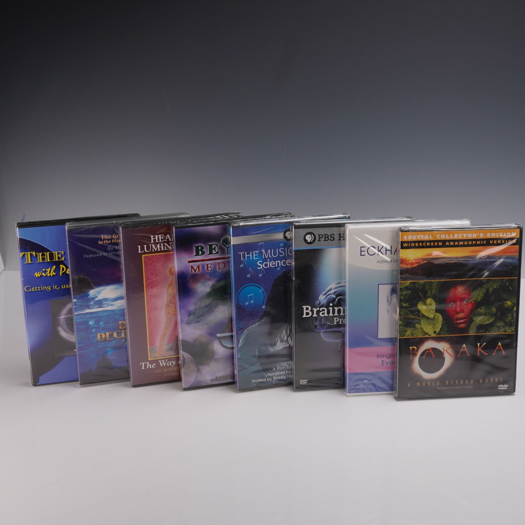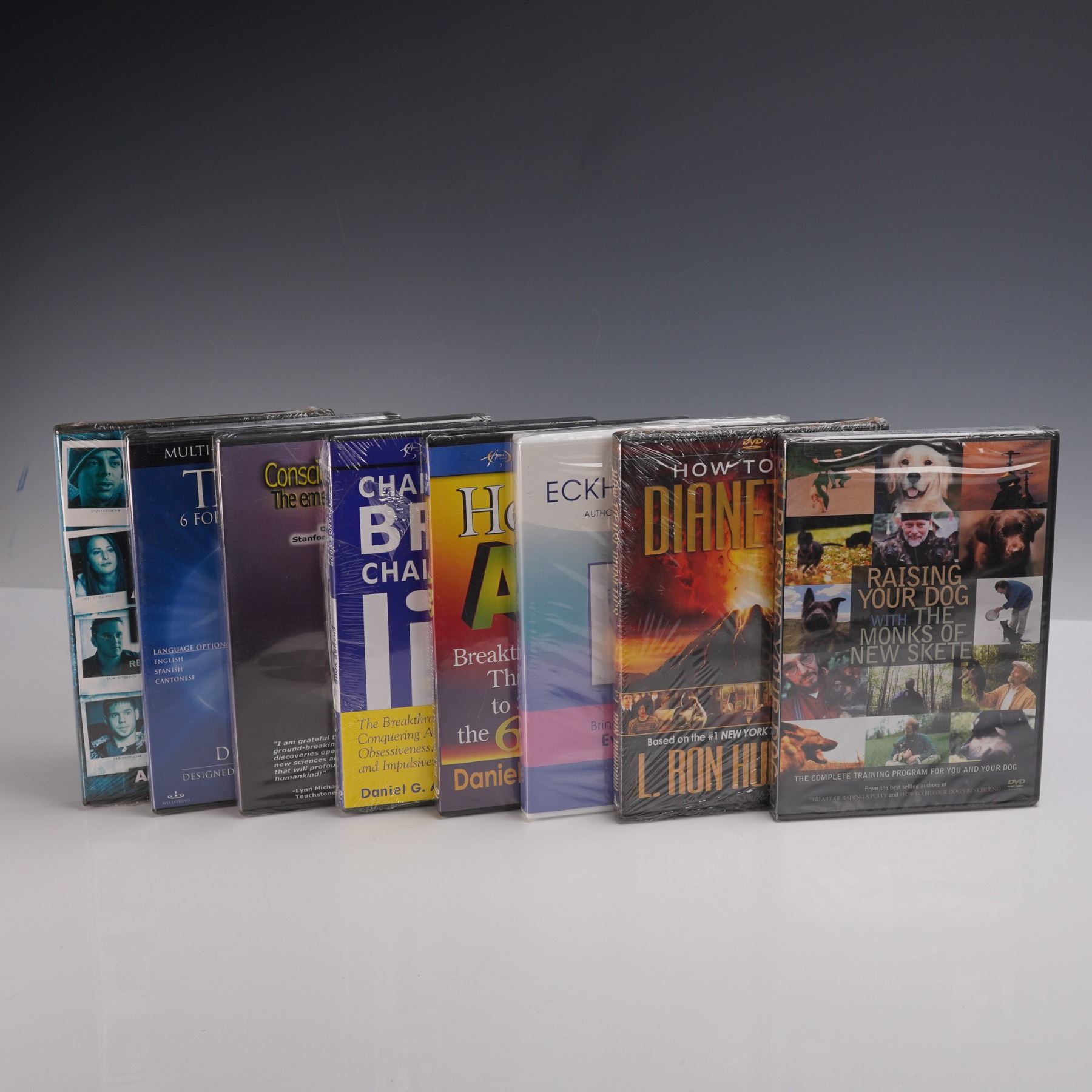 This 16-piece DVD collection covers a broad spectrum of wellness, self-improvement, and personal development themes. Highlights include The Brain Fitness Program, Healing the Luminous Body, The Music Instinct: Science & Song, Tai Chi: 6 Forms & Easy Lessons, and The Truth About Drugs: A Documentary. Also featured are influential titles like Raising Your Dog with the Monks of New Skete, How to Use Dianetics, Eckhart Tolle on Spiritual Living, and The Sight - Peter Paddon. A well-rounded mix for those interested in mindfulness, holistic healing, psychology, and lifestyle enrichment. Each DVD measures approximately 5.5"L x 7.5"H.