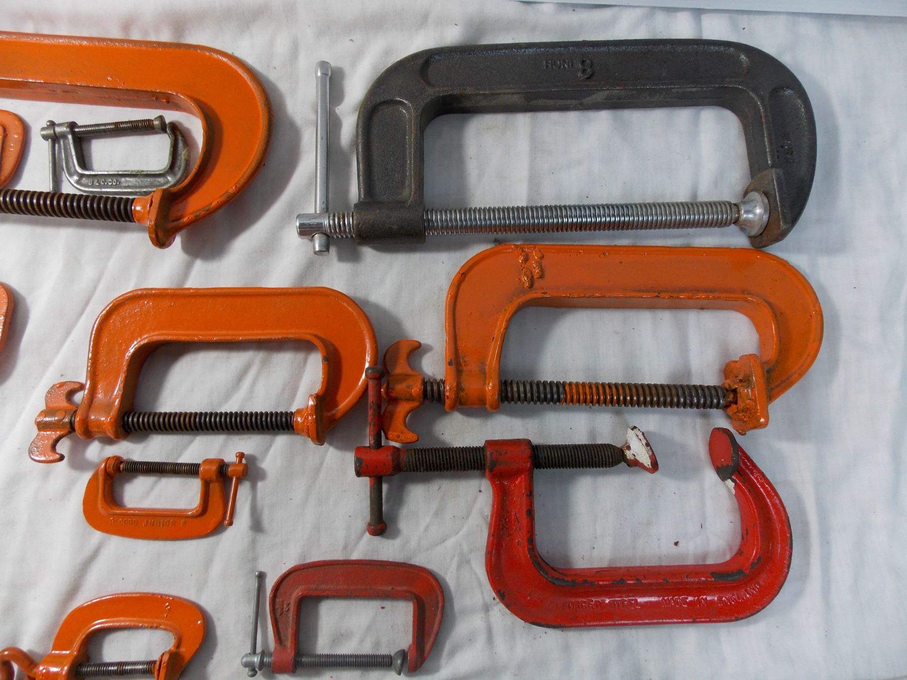 16qty Metal C-Clamps - various sizes - 2"-8"