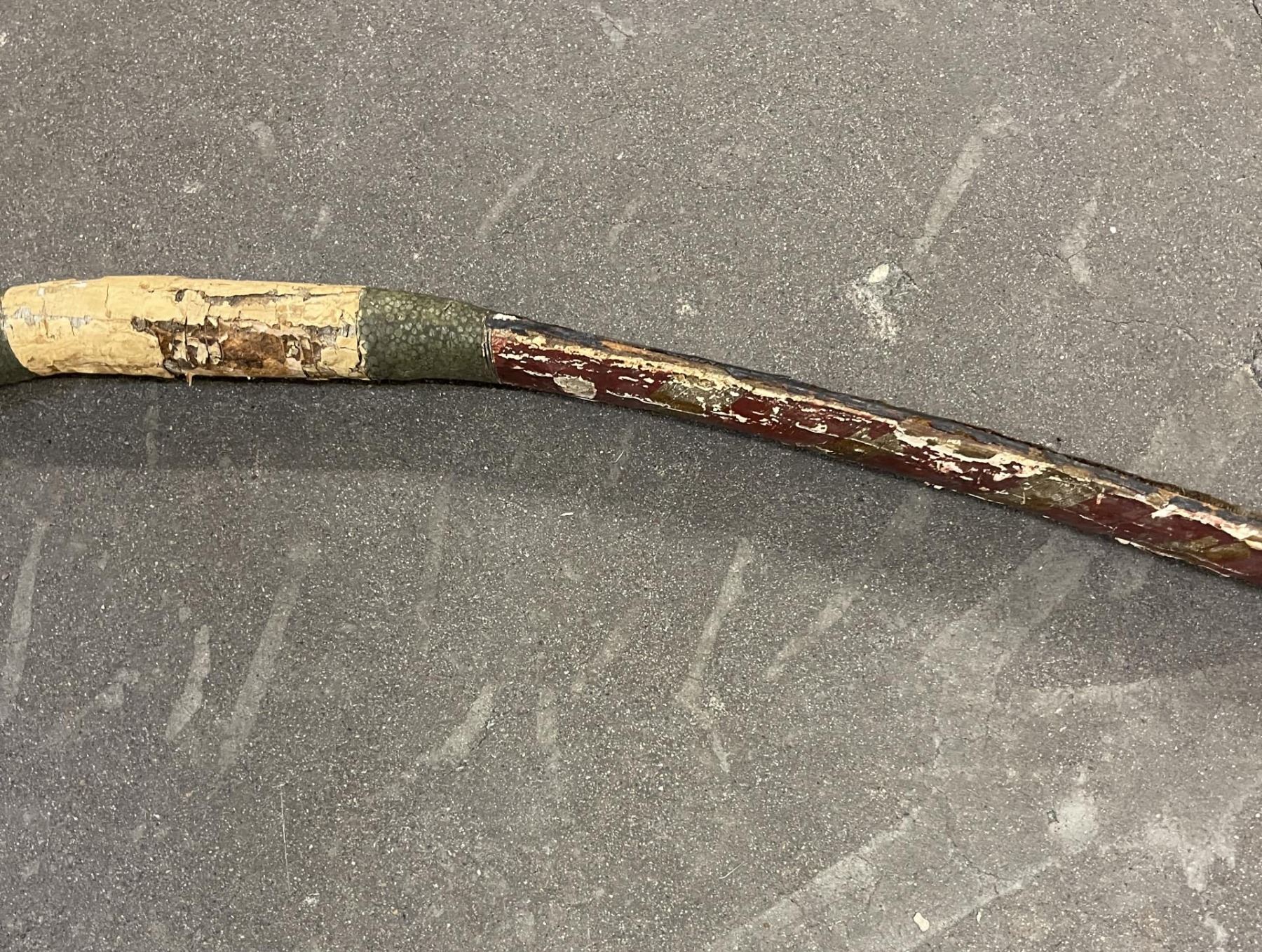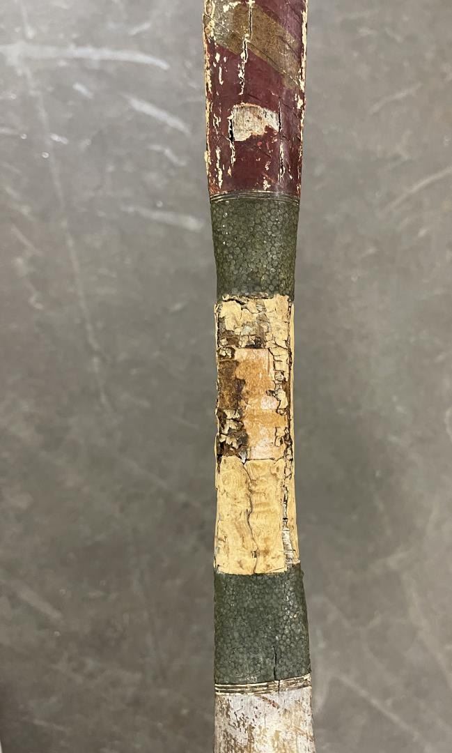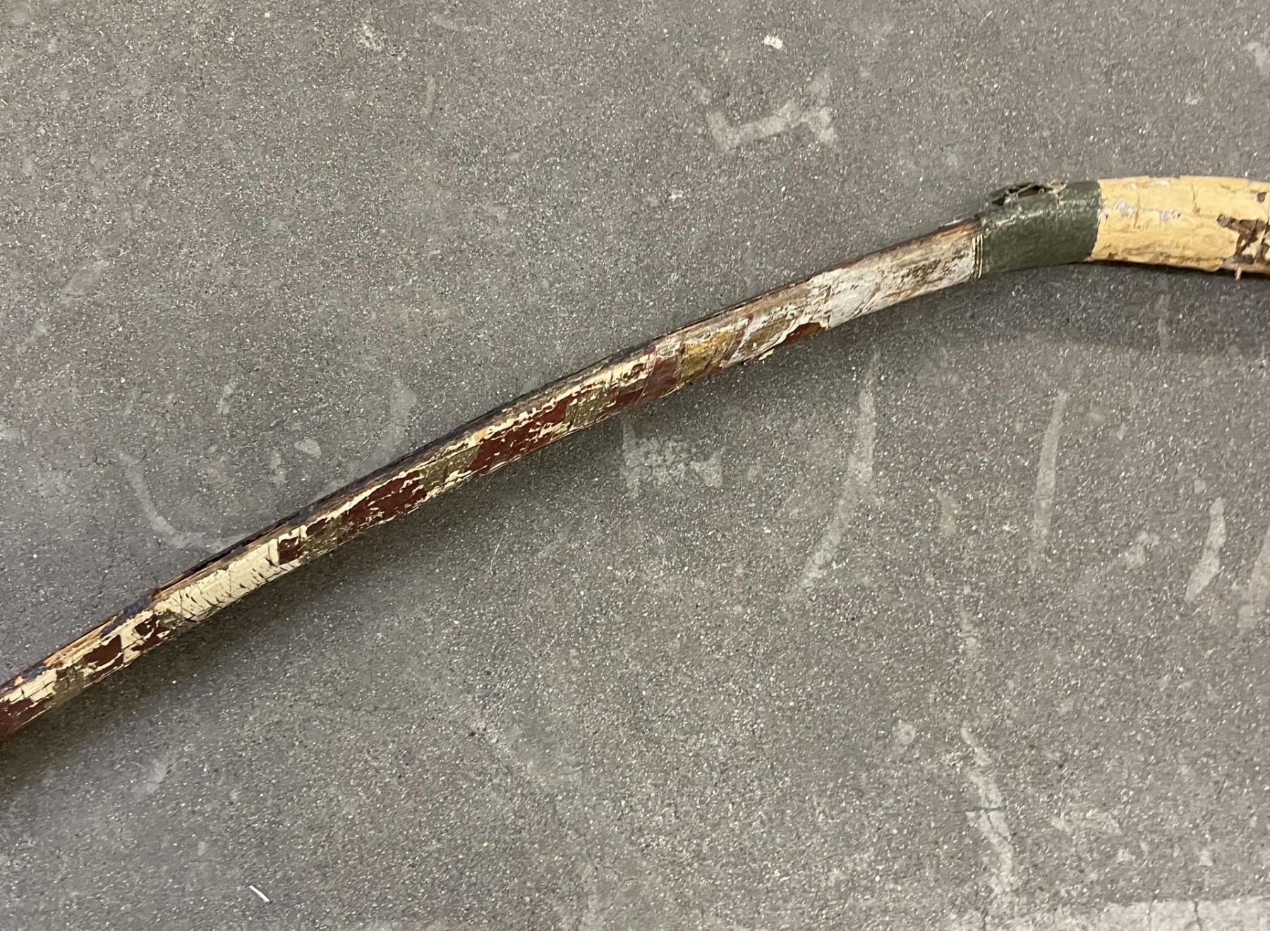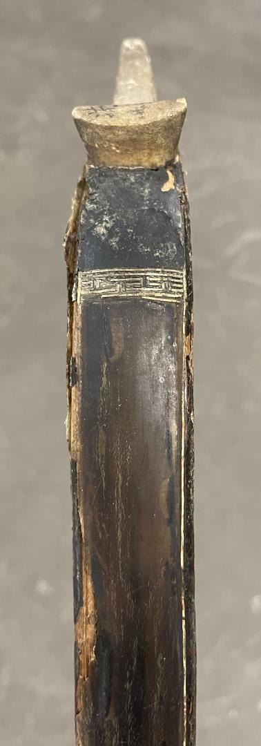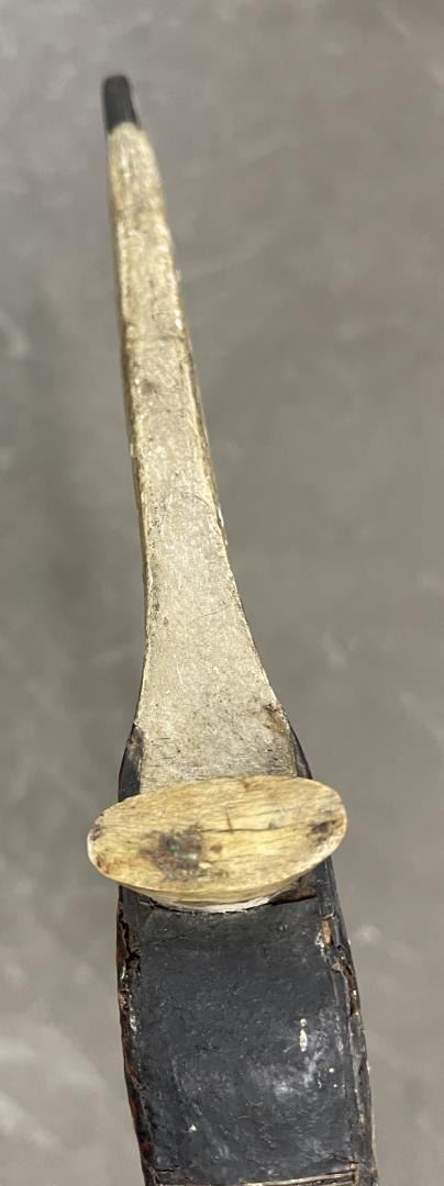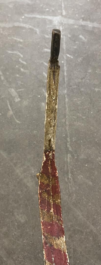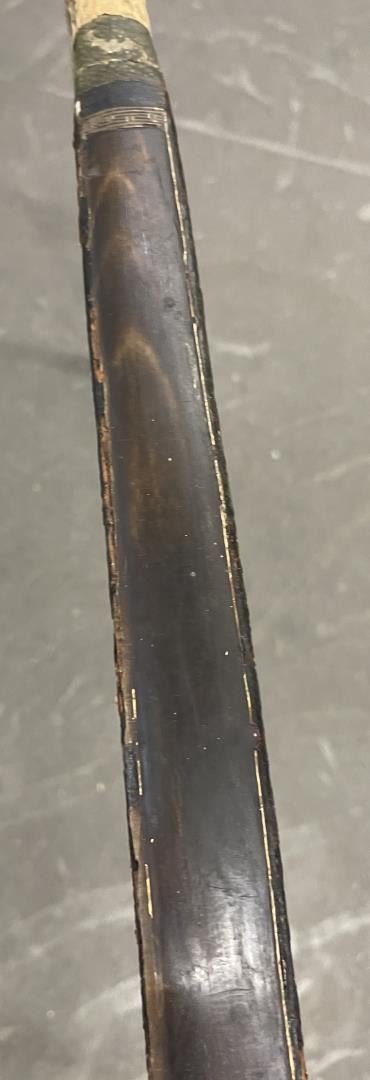 Gene Wensel Collection (Brothers of the Bow). Chinese or Tibetan composite bow, wood, wrapped and painted. Has animal bone/antler. Shagreen (shark skin) on handle. Wood is Birch bark. Bows hung in a temple in chinafor 500 years. Saxton Pope's brother (Navy) brought back from Northern China. Over 500 years old. Brought back around the late 1920s