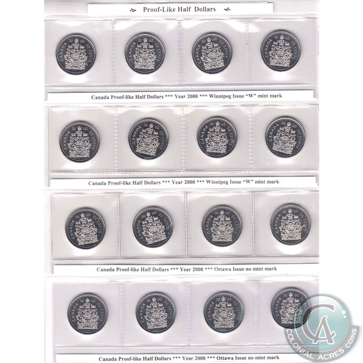 16x 2000 & 2000W Canada Proof-Like 50-cent coins. You will receive 8x "W" Mint Mark and 8x 2000 50-cent coins (16pcs)