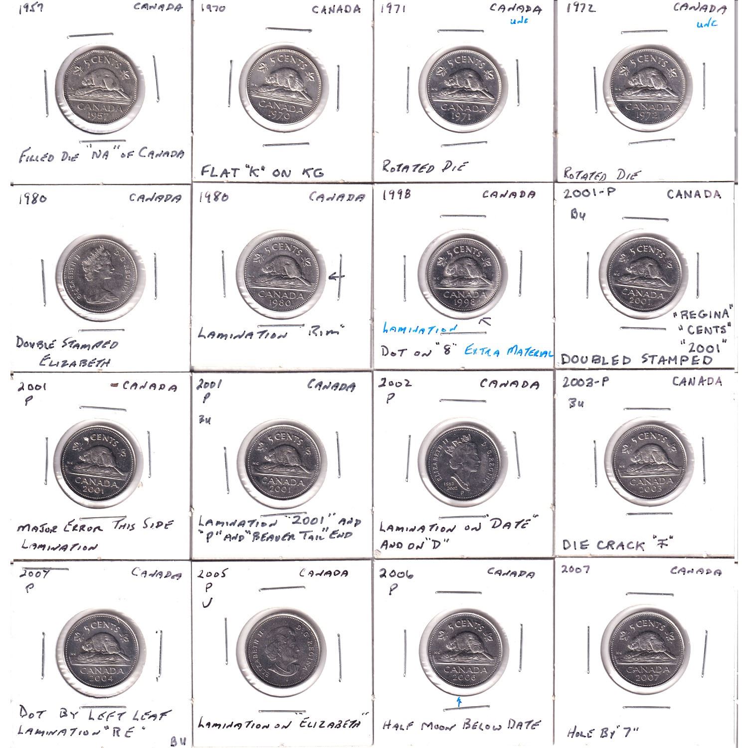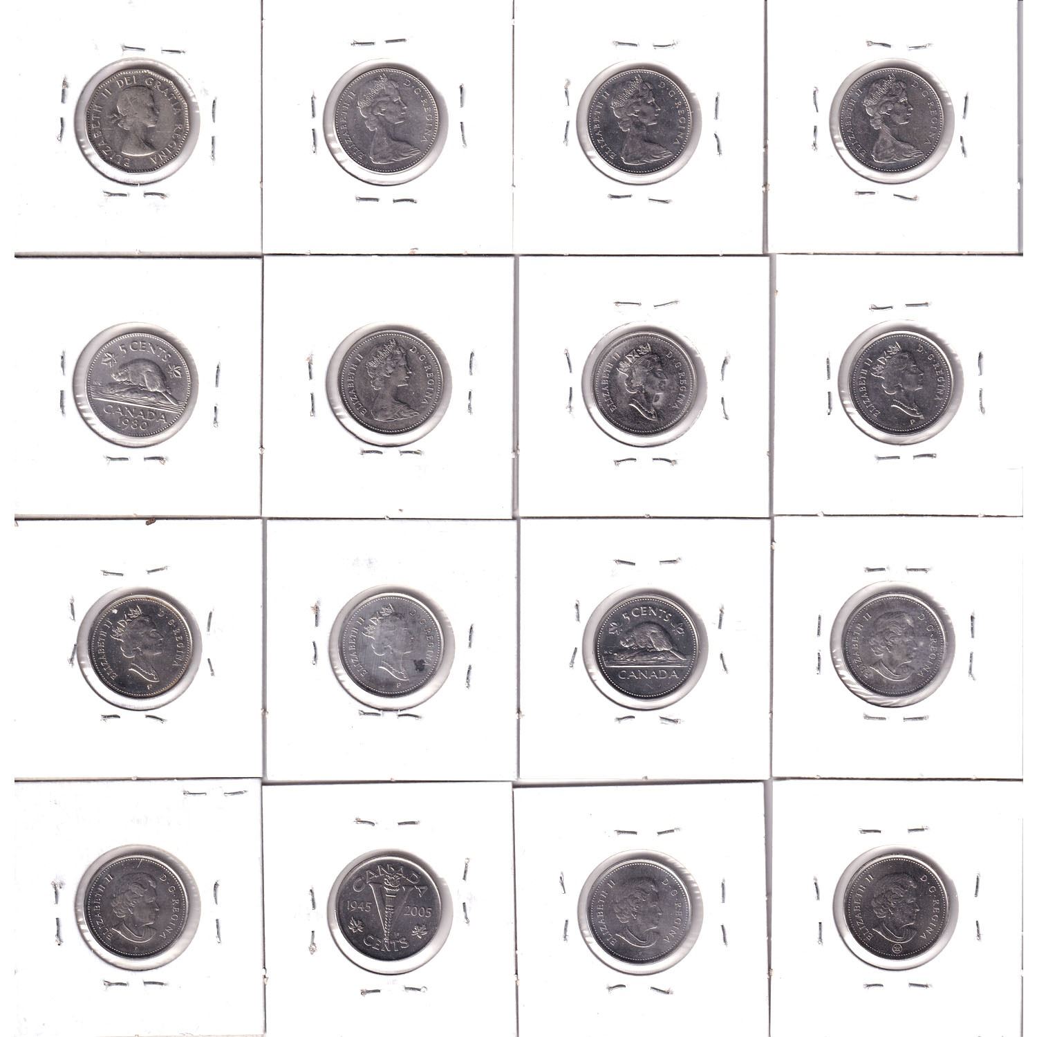 16x Canada Error 5-cents from 1957-2007. 16pcs