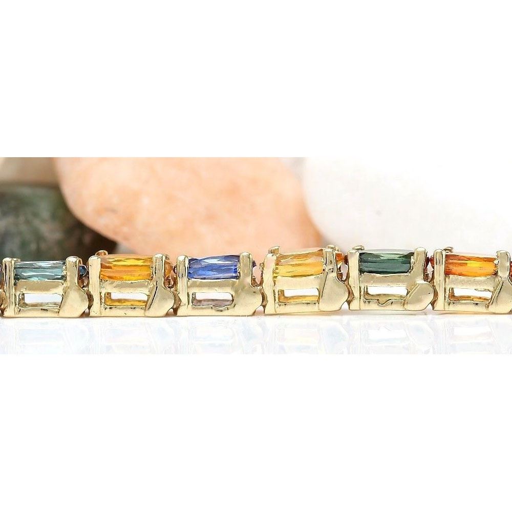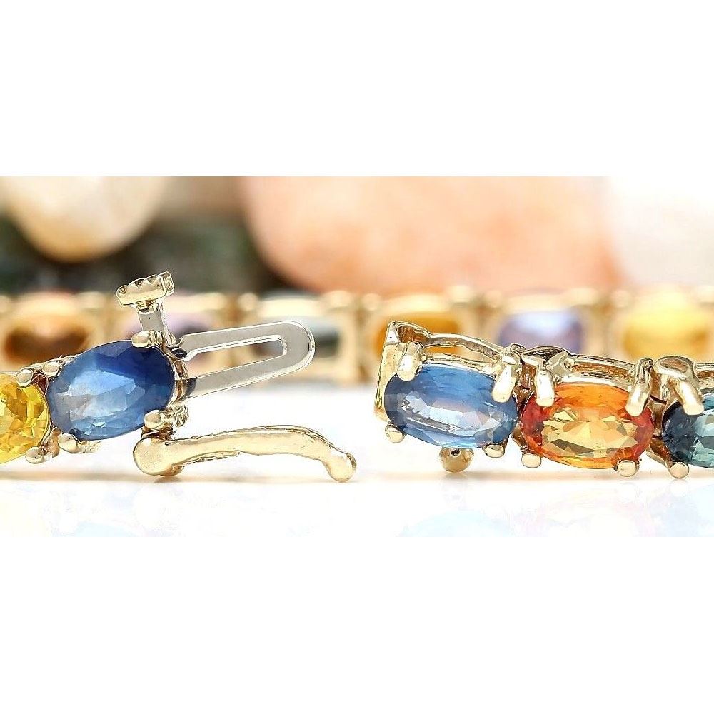 17.00 CTW Natural Sapphire 18K Solid Yellow Gold Bracelet
