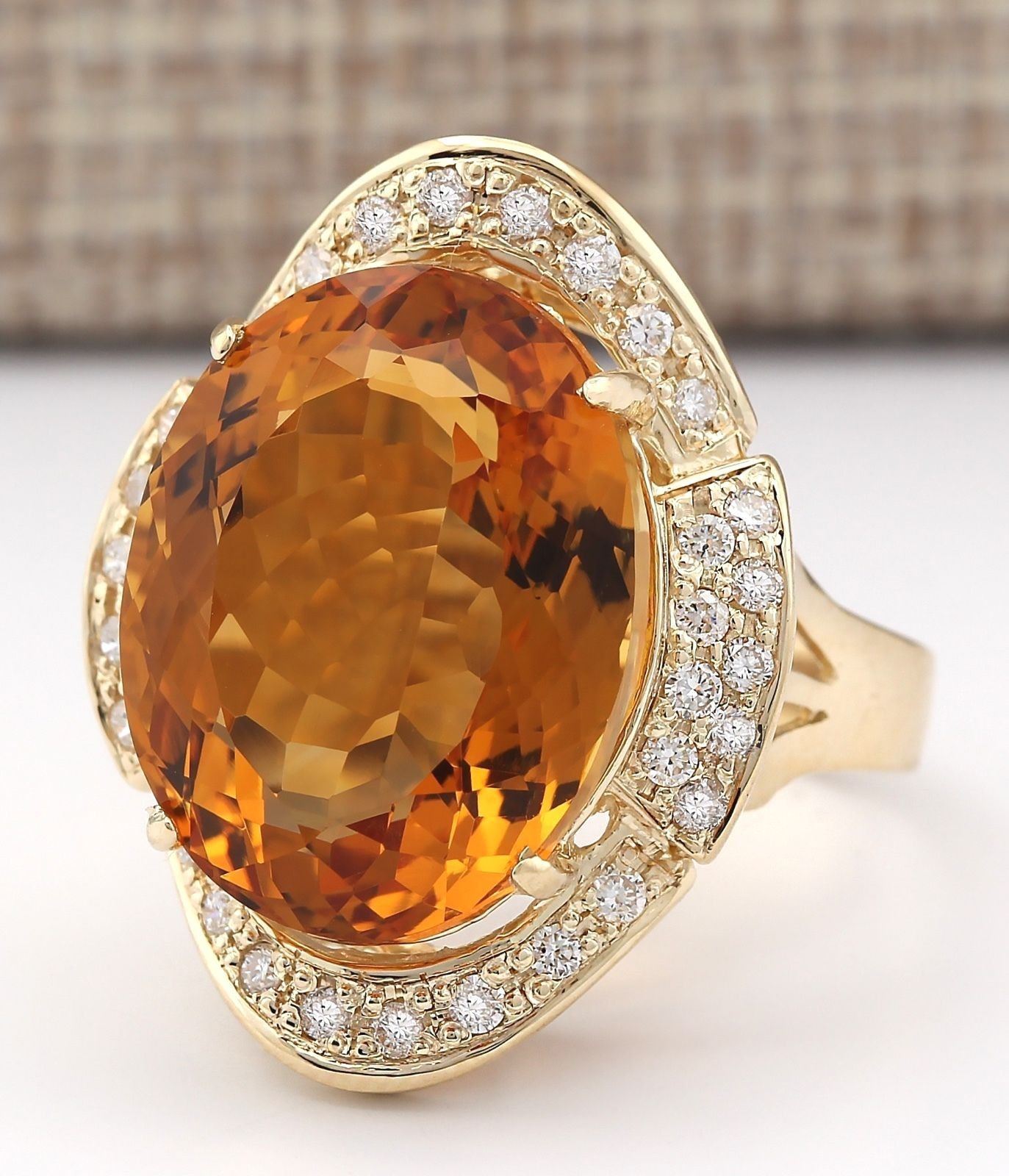 17.06 CTW Natural Citrine And Diamond Ring 14k Solid Yellow Gold