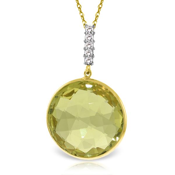 REF#54W6Y ---- Genuine 17.08 ctw Lemon Quartz & Diamond Necklace Jewelry 14KT Yellow Gold
