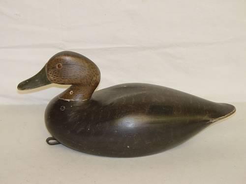 17 1/2" BLACK DUCK DECOY SIGNED F.B. RICE - ALSO W/ A JOSEPH LINCOLN LABEL