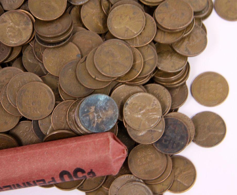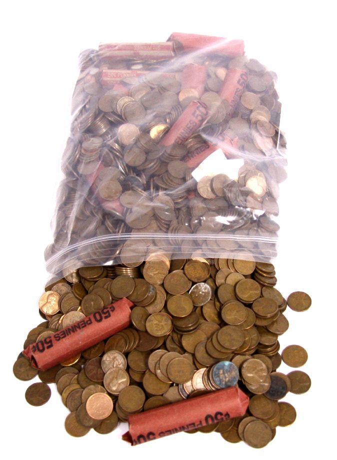 A bag weighing 17.4 lbs. with .3 deducted for the bag a total of 17.1 lbs. of truly unsearched wheat pennies, many early dates noted , including some full date rolls.