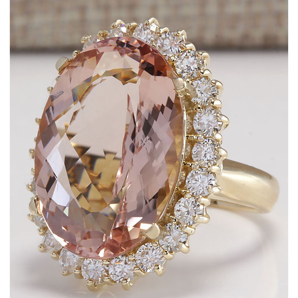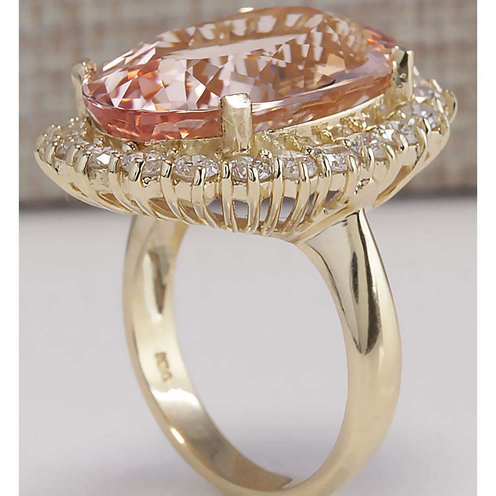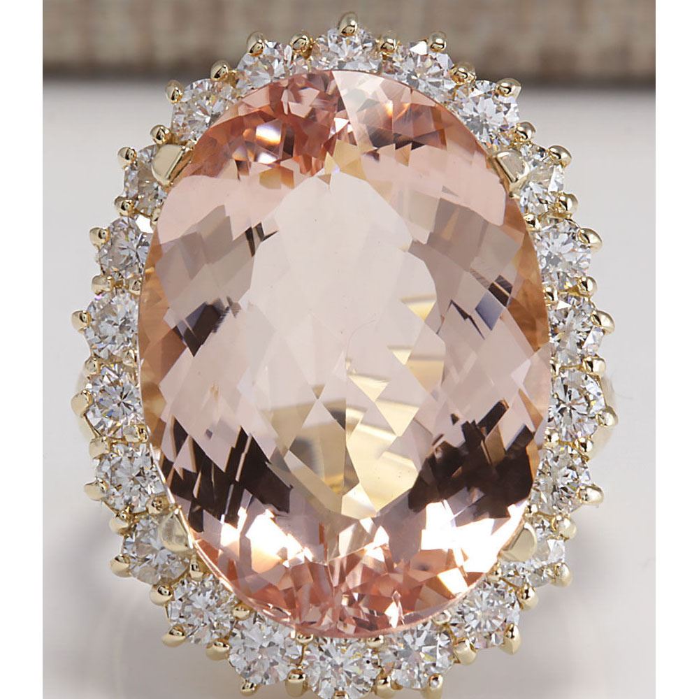 17.14 CTW Natural Morganite And Diamond Ring In 18K Solid Yellow Gold