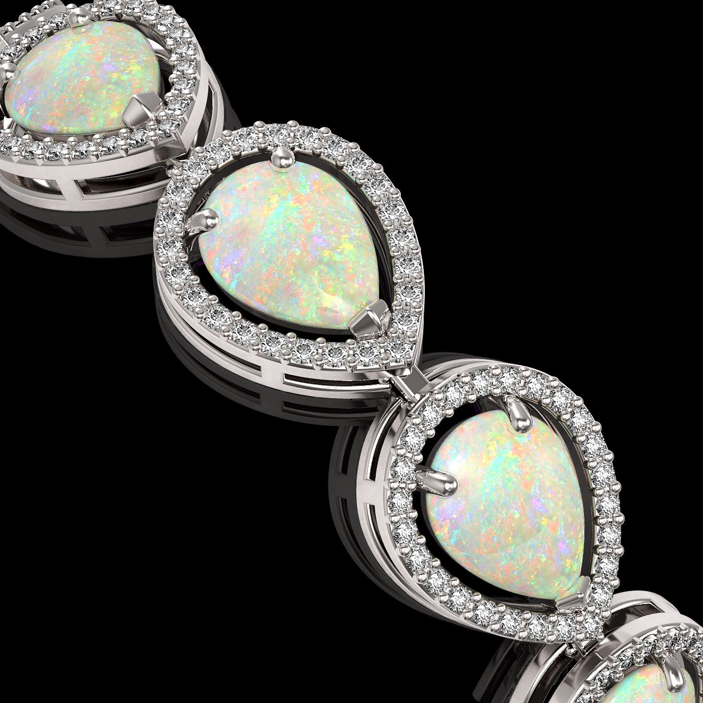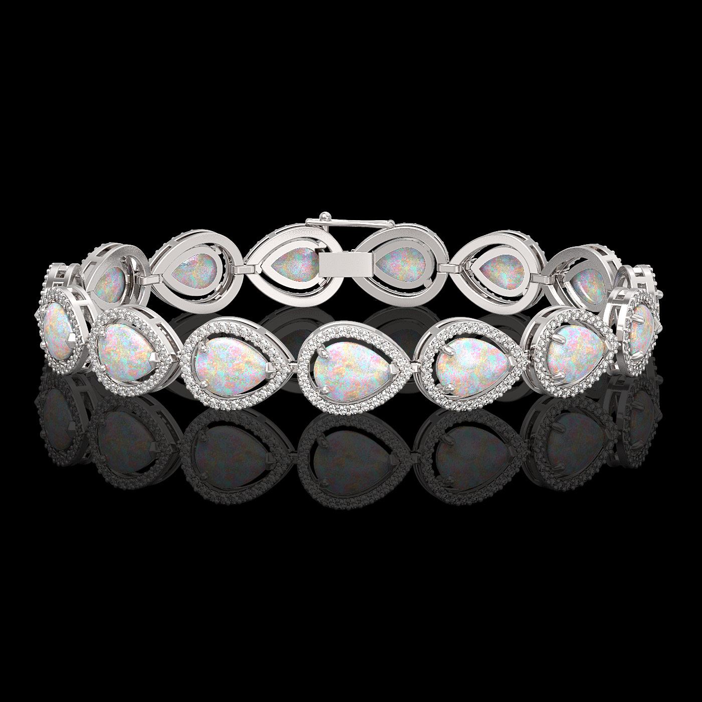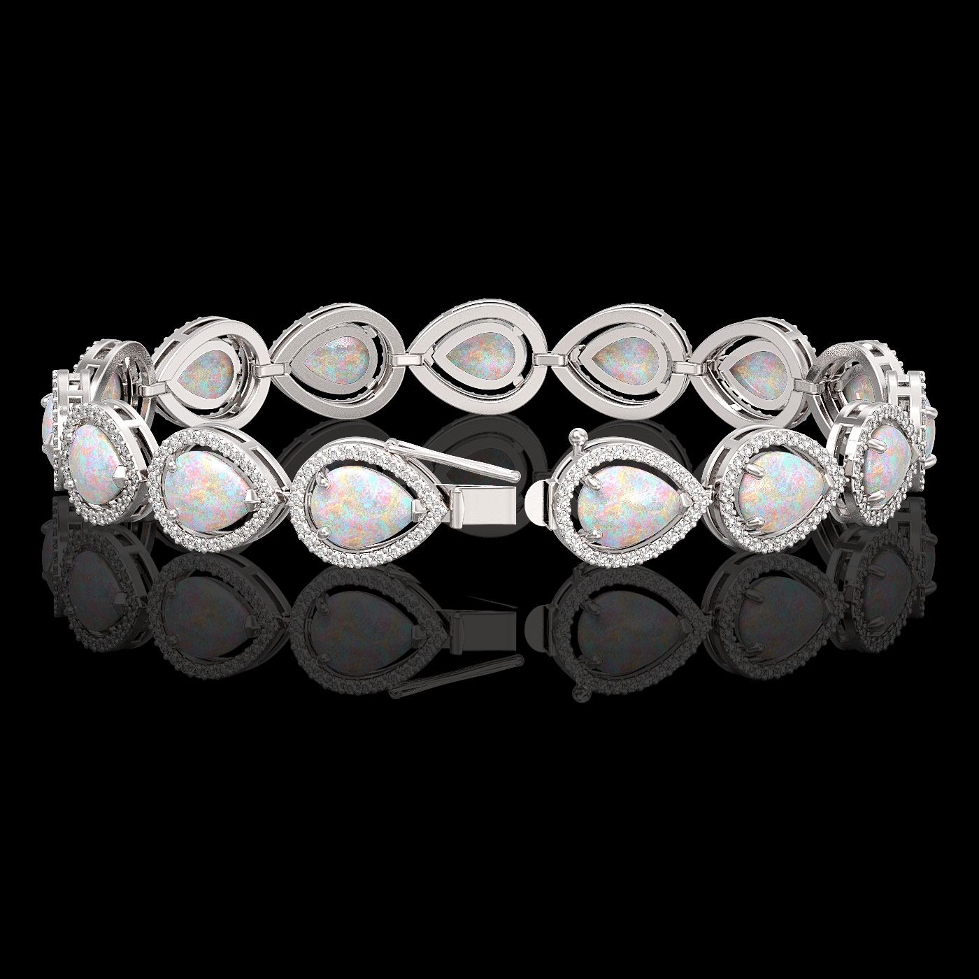 REF-321Y6K -41249 ---- 17.15 CTW Opal & Diamond Halo Bracelet 10K White Gold ---- Luxury Designer Brand Bracelet Appraised at $17,700 Certificate Number US41249 10k White gold, Bracelet Size is 7 Inches, Bracelet measuring approx. 10 mm x 7 Inches, weighing in total approx. 14.5 grams. Made in the USA and is stamped 10k, Main stone 14.1 carat total weight containing 15 pieces of White with Fire color with AAA quality Pear shape cut Opal , Stone #2 3.05 carat total weight containing 375 pieces of G-H color with VS/SI quality Round shape cut Diamond