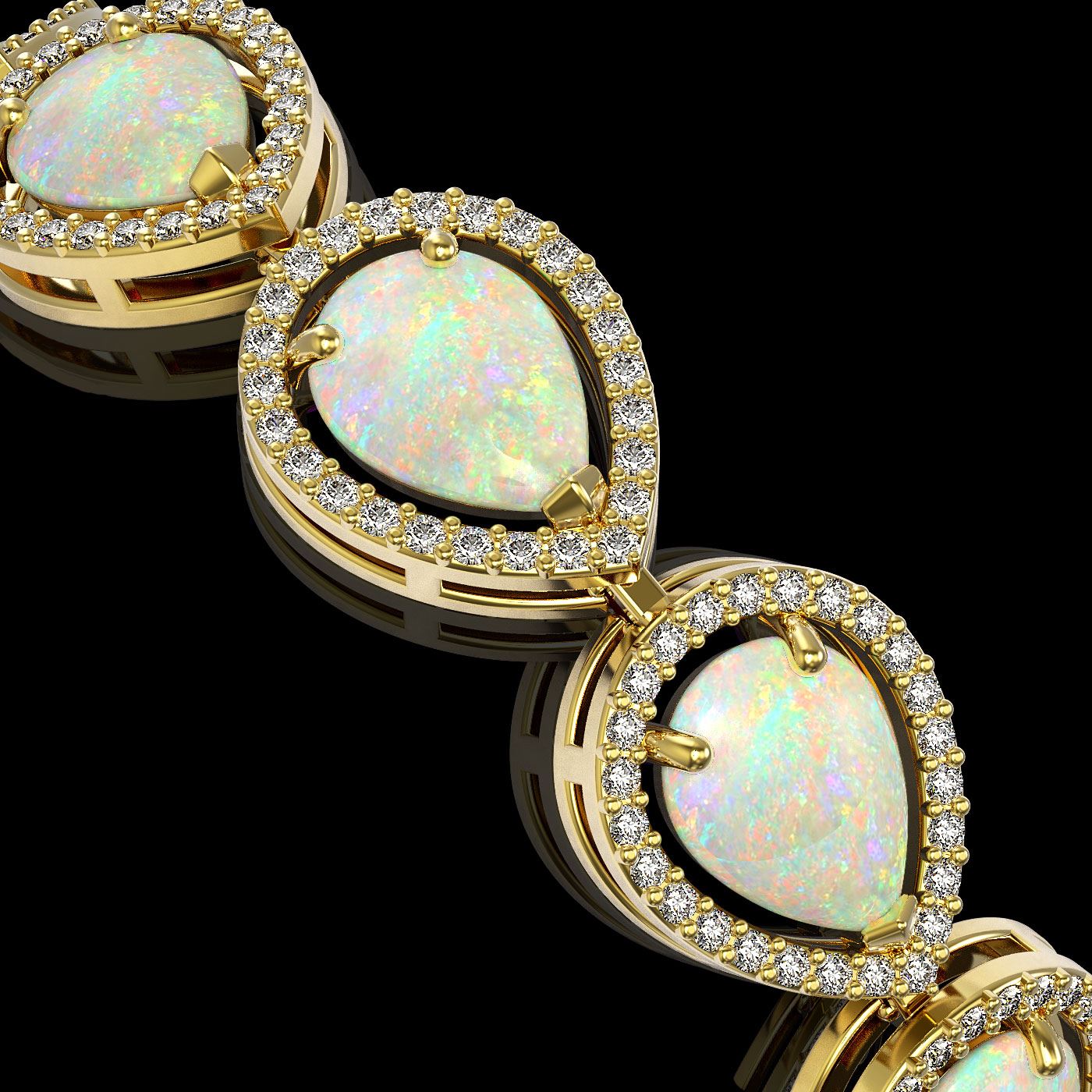 REF-321A6N - SKU: 41251 ---- 17.15 ctw Opal & Diamond Micro Pave Halo Bracelet 10k Yellow Gold