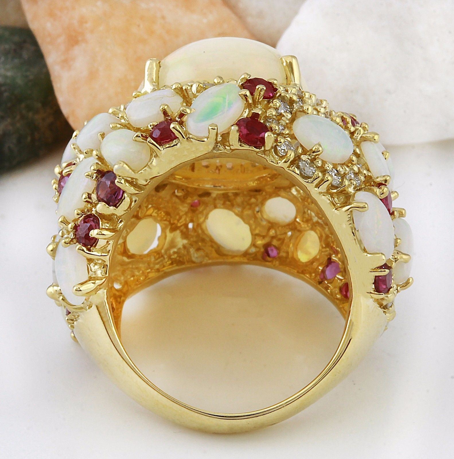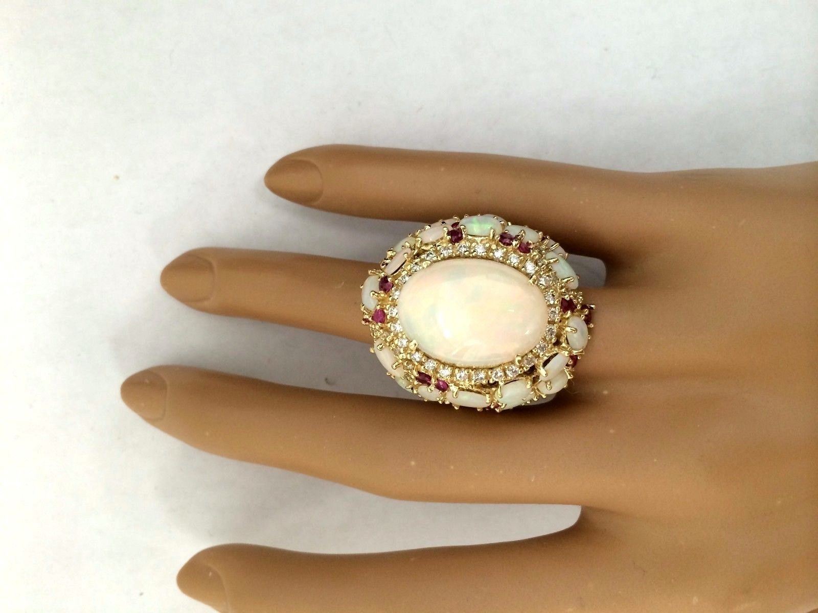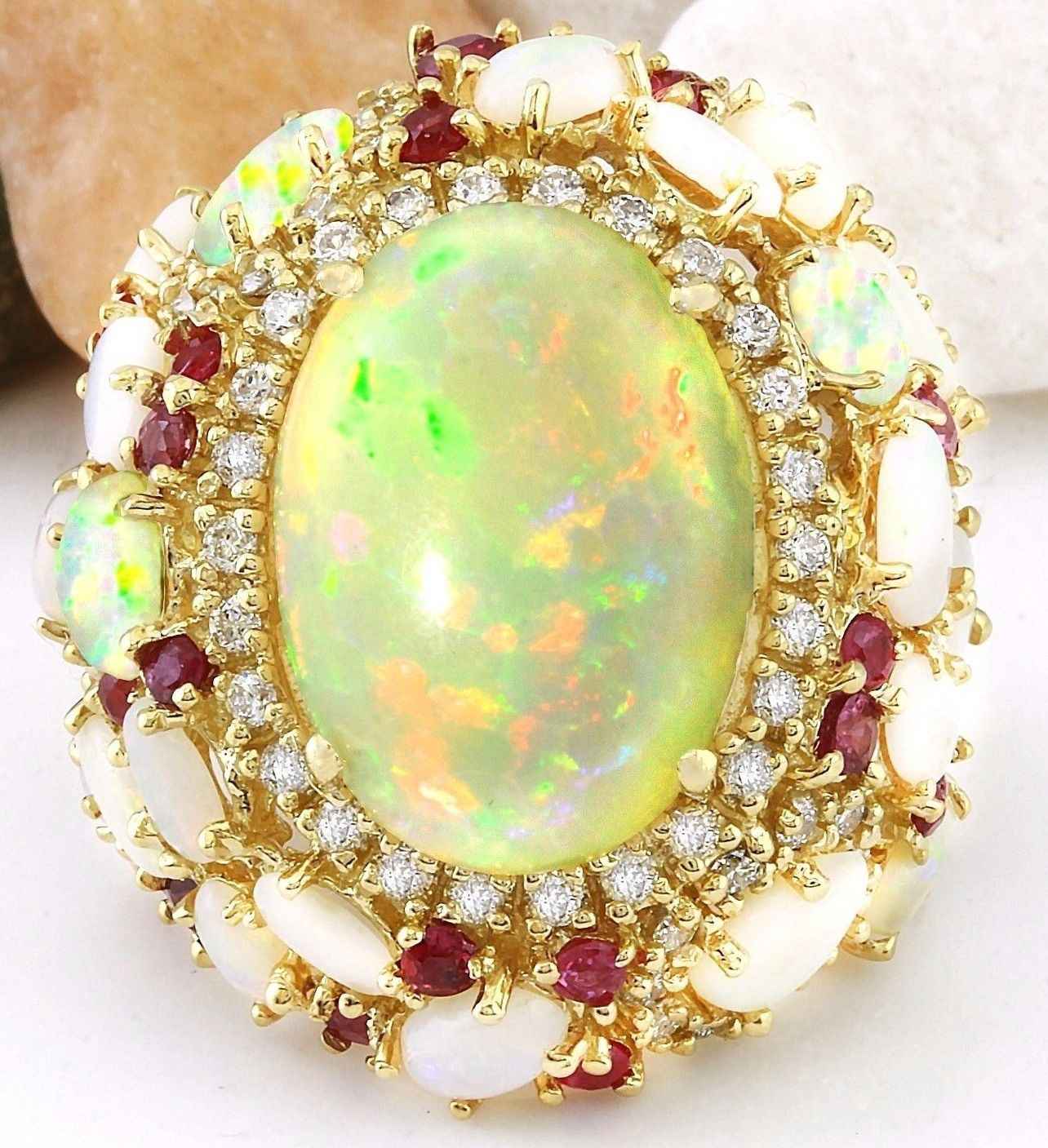 17.17 Carat Natural Opal, Ruby 18K Solid Yellow Gold Diamond Ring