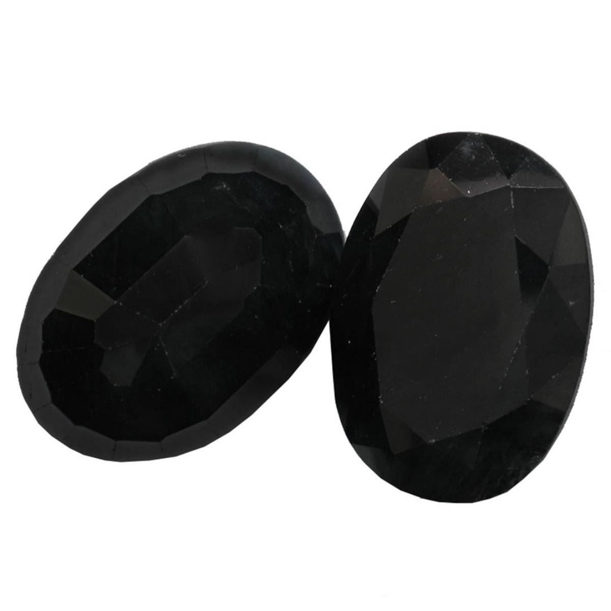 Two oval mixed cut natural blue sapphires, measuring 14.00 x 10.00 x 6.50mm, exact total weight 17.18ct., clarity is heavily included, type II, very dark, very slightly grayish, blue color, (GIA B 8/3), cut is good. Measurements are an average for the group. Transmitting light very diffusely, opaque, Naturally occurring internal & external characteristics are present, Indications of multiple laboratory enhancements, including high temperature heat treatment. Westfield Appraised at $1,580.00.