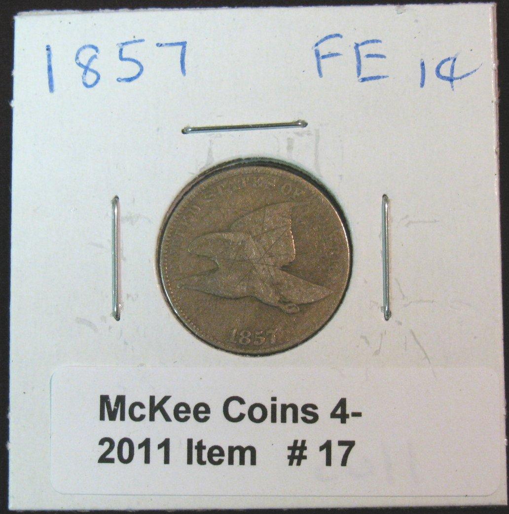 17. 1857 U.S. Flying Eagle Cent. VG. Several obverse scratches.