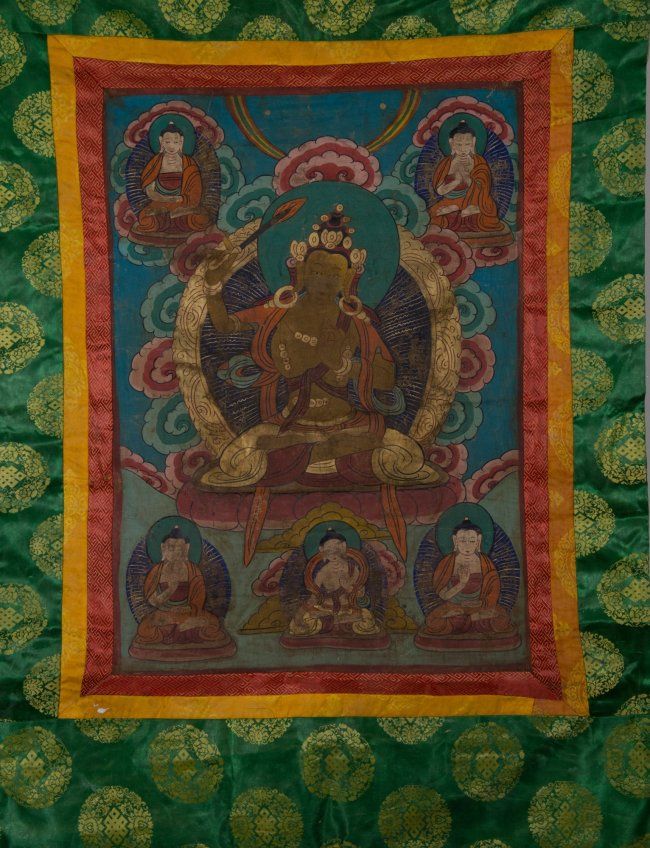 17/18th Century Chinese Tibetan silk Thangka or Tanka of Bodhisattva; 105 cm x 80 cm