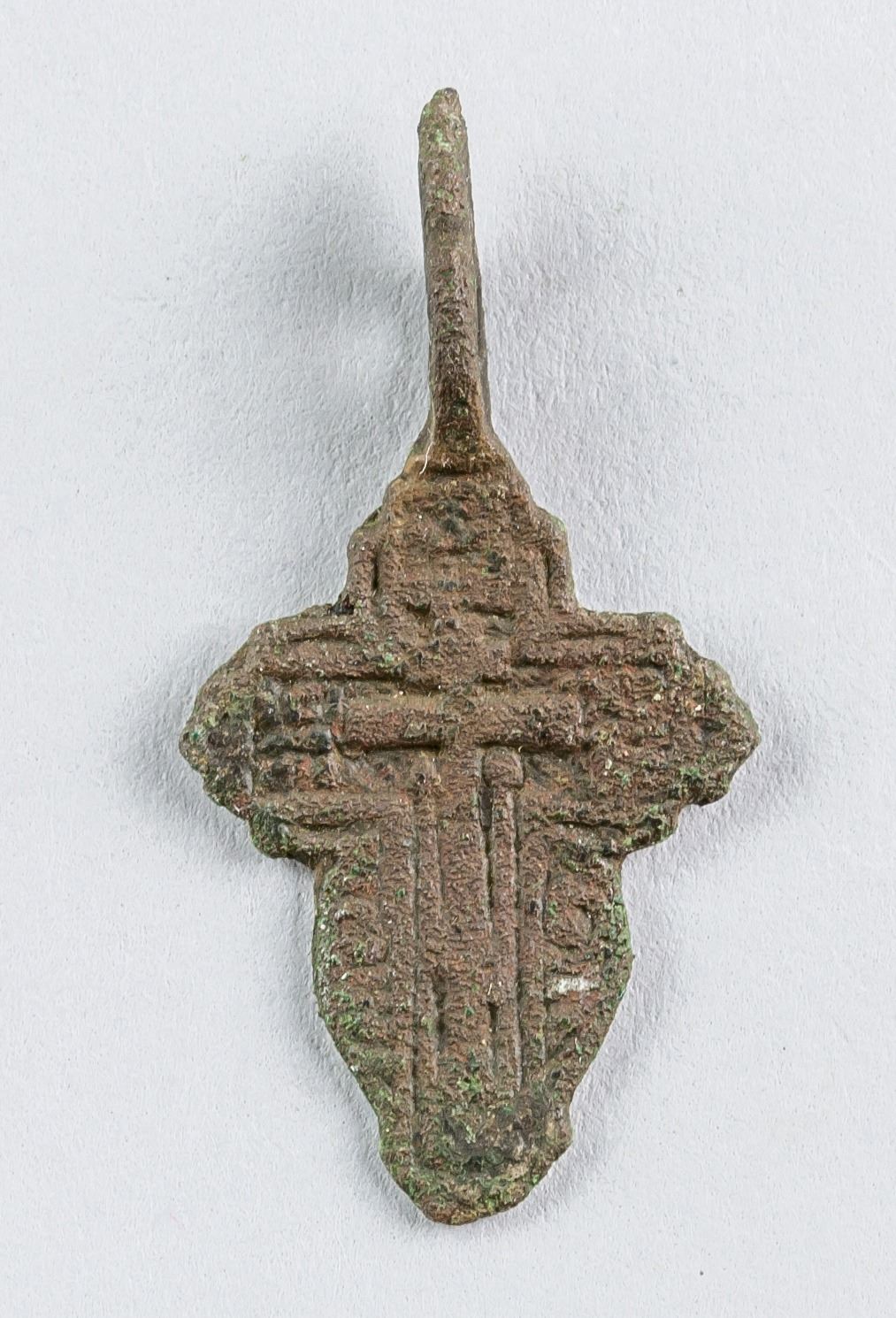 17-18th century Russian Orthodox cross pendant, 35.3 x 18.1 mm, 2.193 grams. PROVENANCE: Private collection (Virginia, United States)