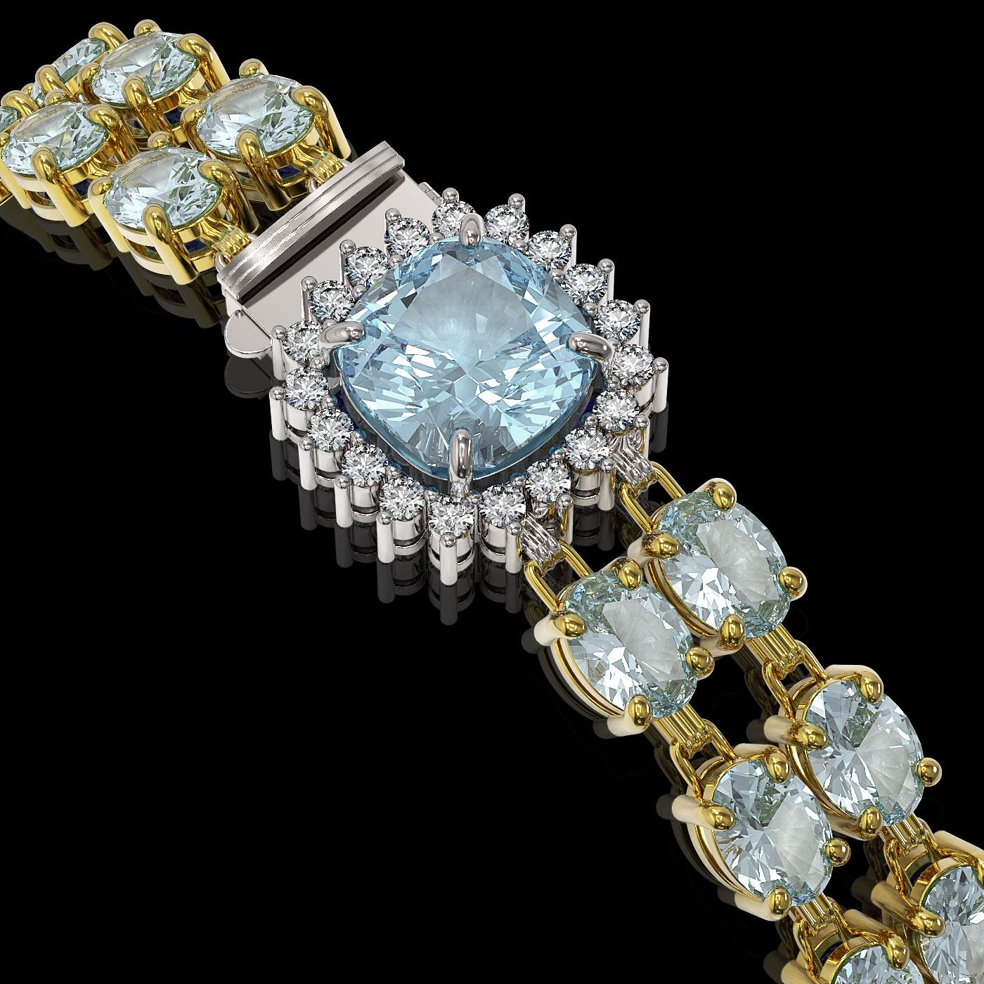 REF-289R3K - SKU: 44764 ---- 17.19 ctw Aquamarine & Diamond Bracelet 14K Yellow Gold