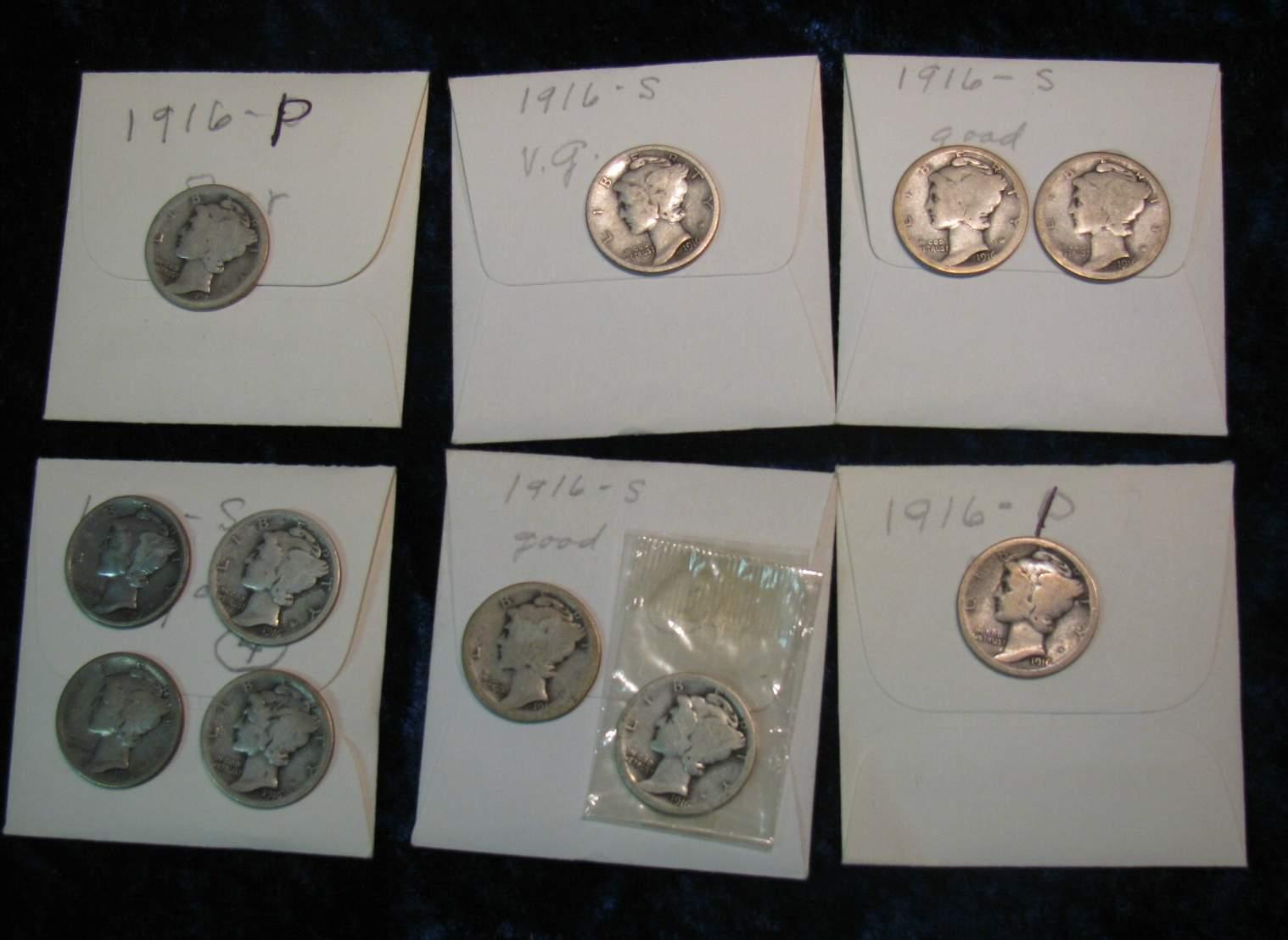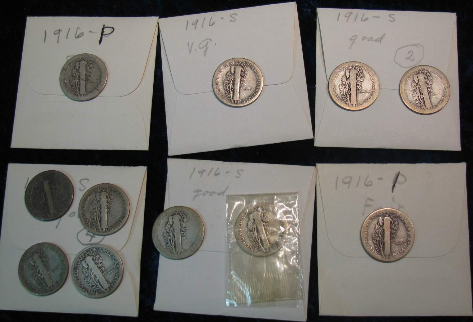 17. (2) 1916P & (9) 16S Mercury Dimes. AG-VG.