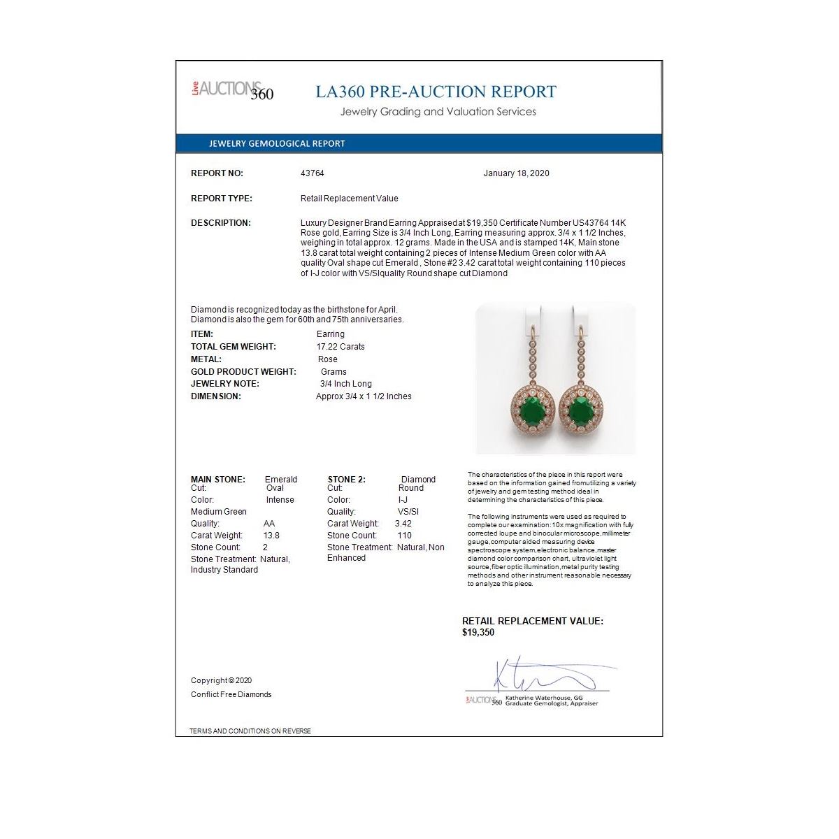 REF-391X3A - SKU: 43764 ---- 17.22 ctw Certified Emerald & Diamond Victorian Earrings 14K Rose Gold