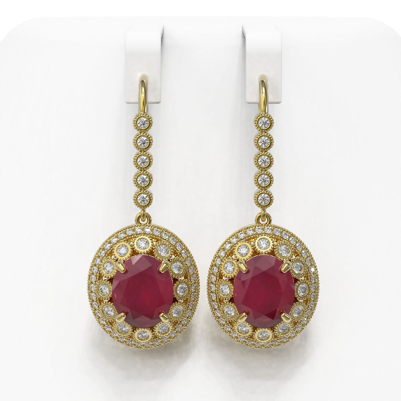 SKU: 43768 ---- 17.22 ctw Certified Ruby & Diamond Victorian Earrings 14K Yellow Gold